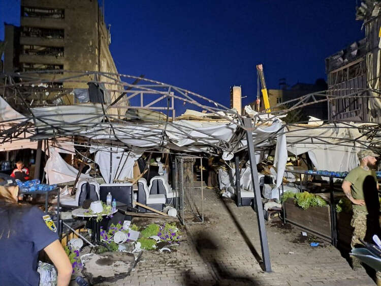 Rus füzesinin isabet ettiği binada, restaurant işletmeleri ve satış mağazaları yerle bir oldu.