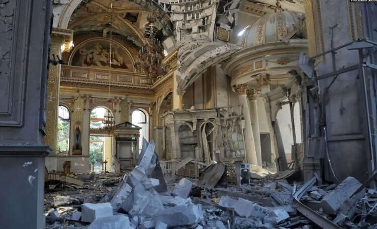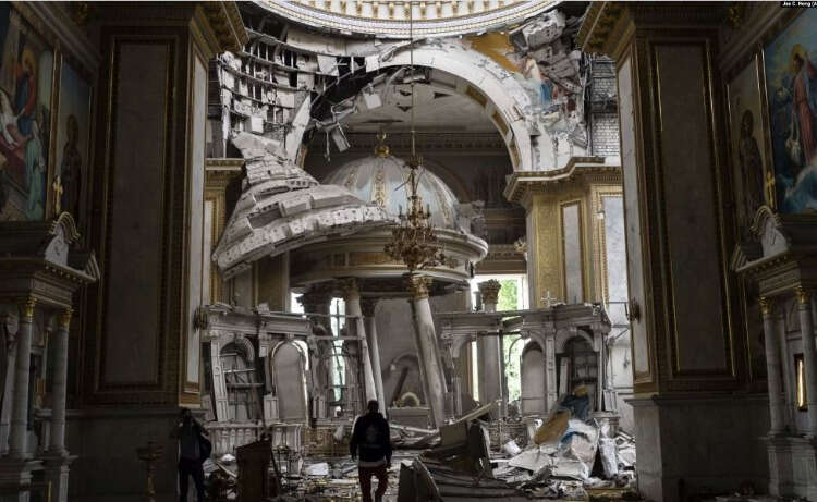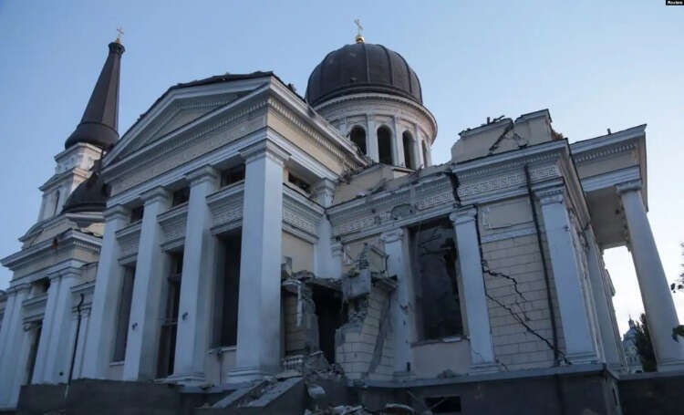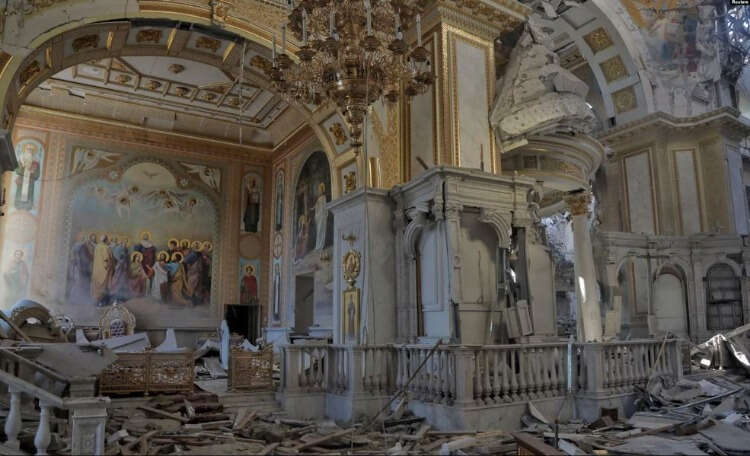 Odesa'nın merkezindeki 1794 yılında inşa edilen Spaso-Preobrajenskıy Katedrali, Rus füzeleri yüzünden büyük oranda zarar gördü.