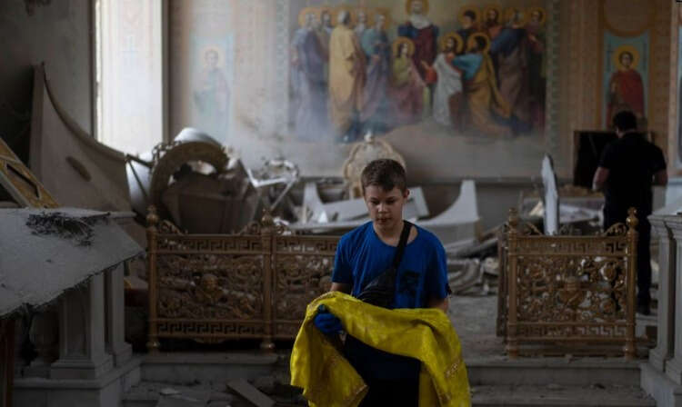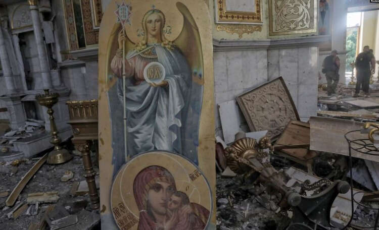 Başdiyakoz Andriy Palçuk, füzenin katedralin sağ tarafına çarptığını bildirdi. Tarihi yapı ağır hasar aldı.