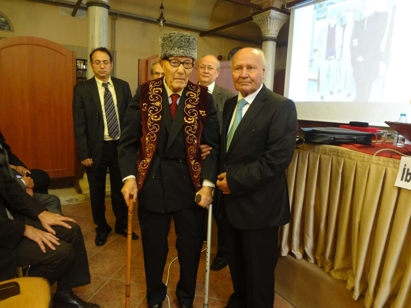 İSMAİL GASPIRALI'NIN İDEALLERİNİ GENÇLERE TANITMAK İÇİN YAZDIĞI ESERLERLE KIRIM TATAR DAVASINA KATKIDA BULUNAN SABRİ ARIKAN (100) İÇİN TÜRK DÜNYASI ARAŞTIRMALARI VAKFI TARAFINDAN YAPILAN SAYGI TÖRENİ. ZAFER KARATAY, YUSUF GEDİKLİ