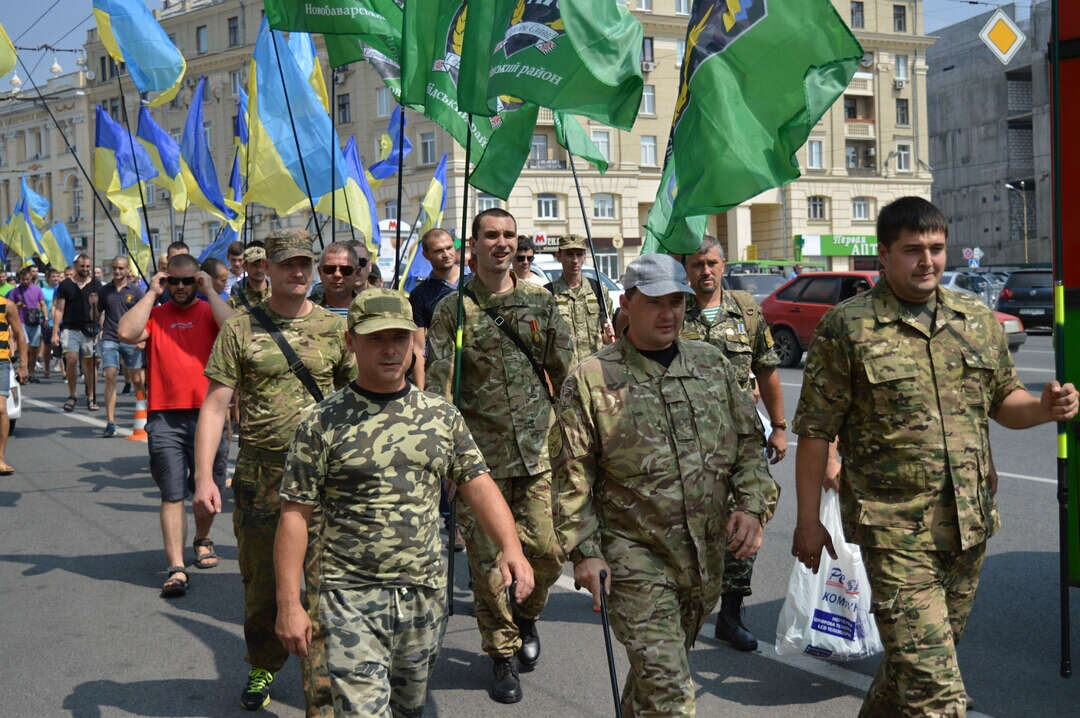 Ukrayna’nın doğu bölgelerinde gerçekleştirilen terörle mücadele operasyonu katılımcıları, 29 Temmuz tarihinde Harkiv Belediyesi önünde eylem düzenledi. Eylemciler, yasalarca öngörülen ücretsiz ulaşım hakkının yerine getirilmesinin sağlanmasını talep etti.