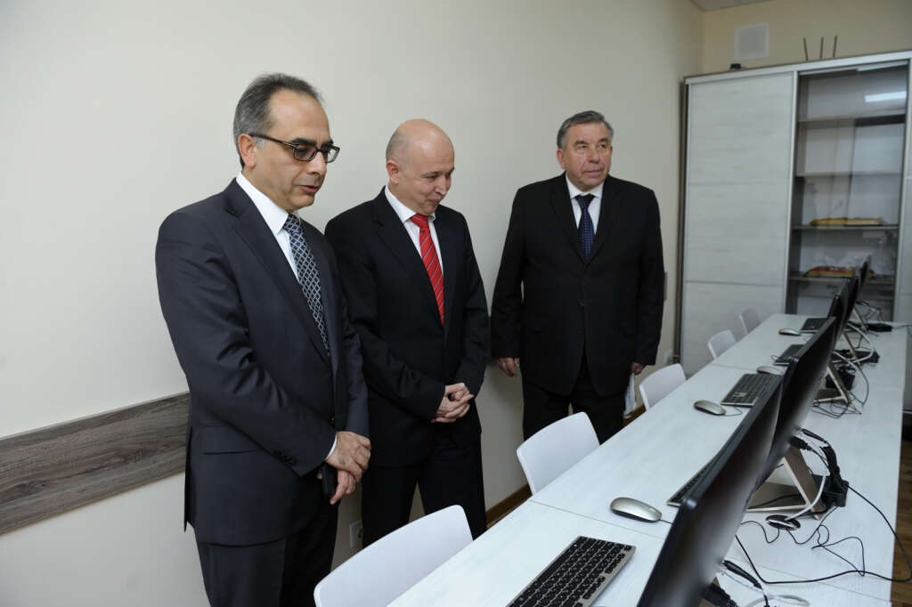 “Türk Dünyası” multimedya konferans salonunda, öğrenciler için altı ve bir tanede öğretim elemanı için olmak üzere yedi bilgisayar kısmı, bir projektör ve diğer ofis ekipmanları ile interaktif tahta yerleştirildi.