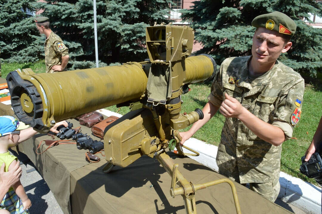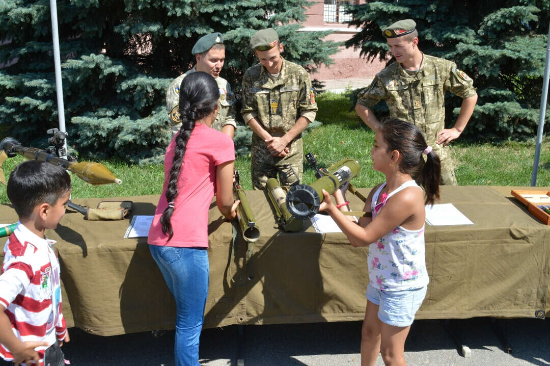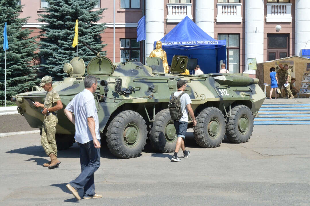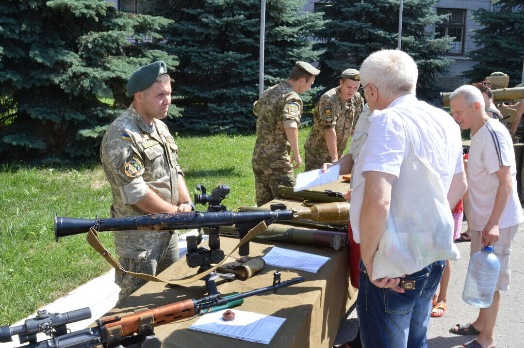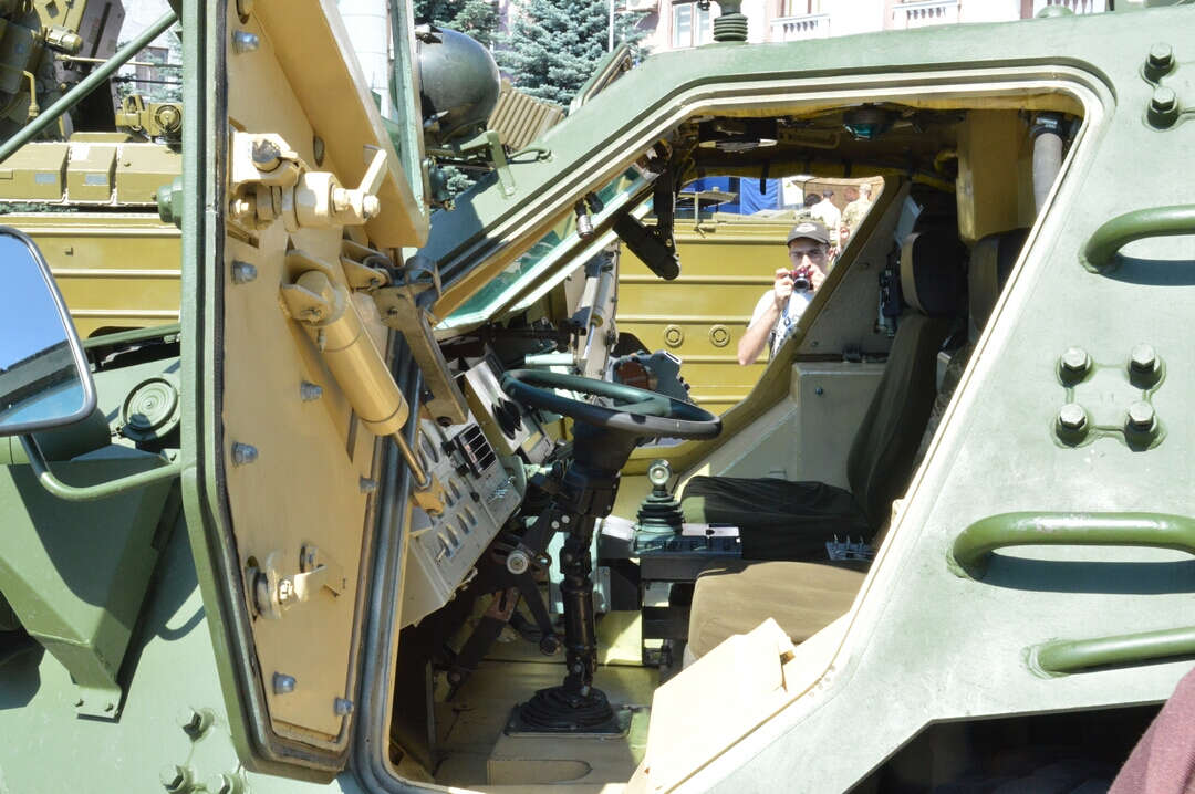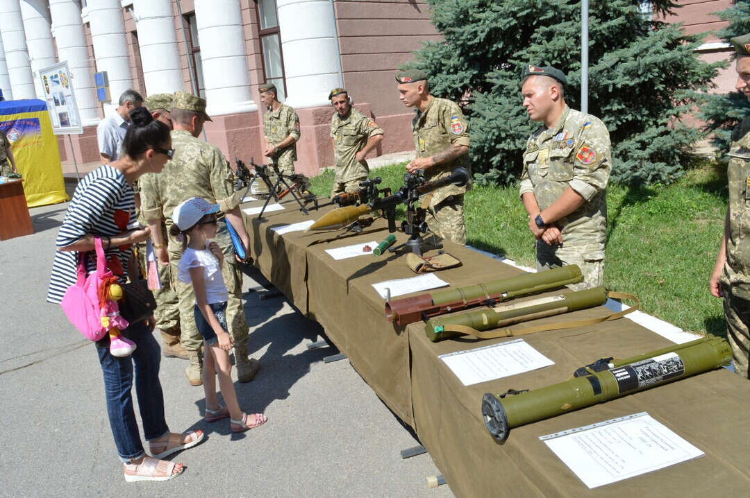 Ukrayna’nın Harkiv şehrinde Ukrayna Silahlı Kuvvetleri askerleri kullandıkları askeri teçhizatı vatandaşlara sergiledi.