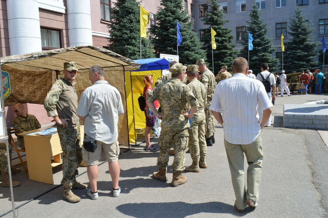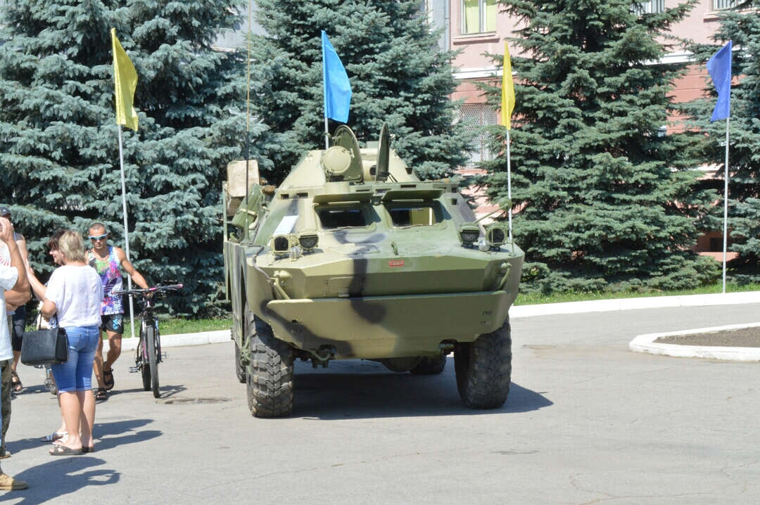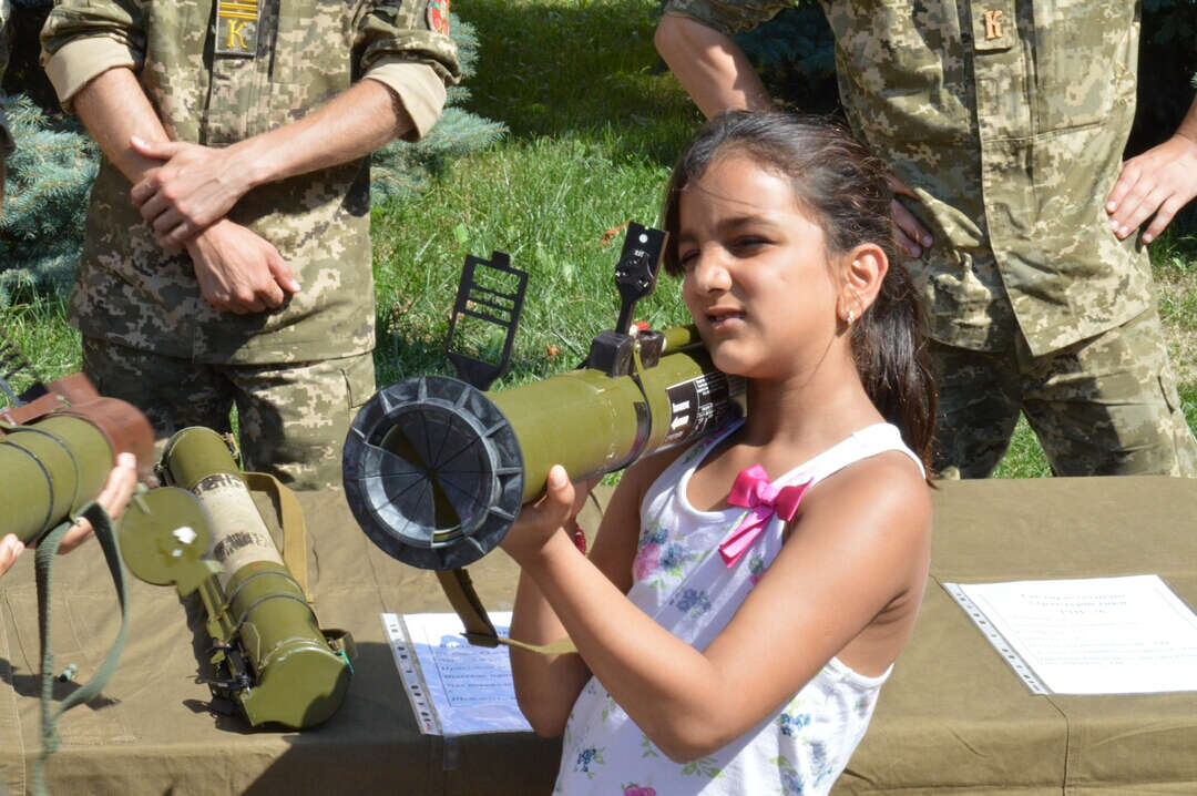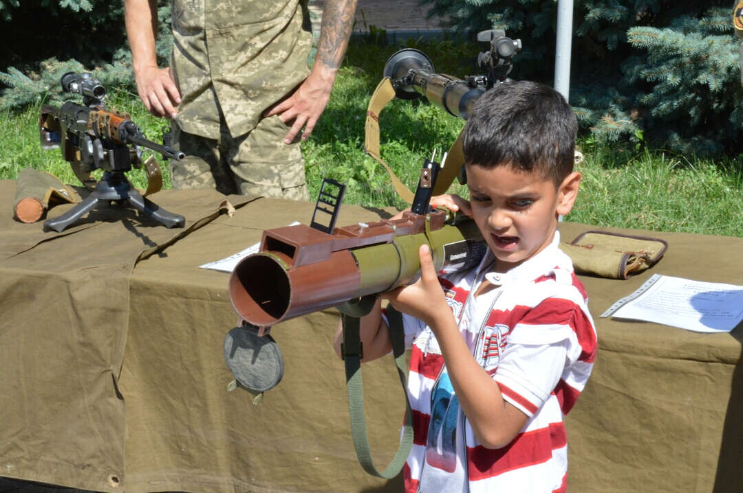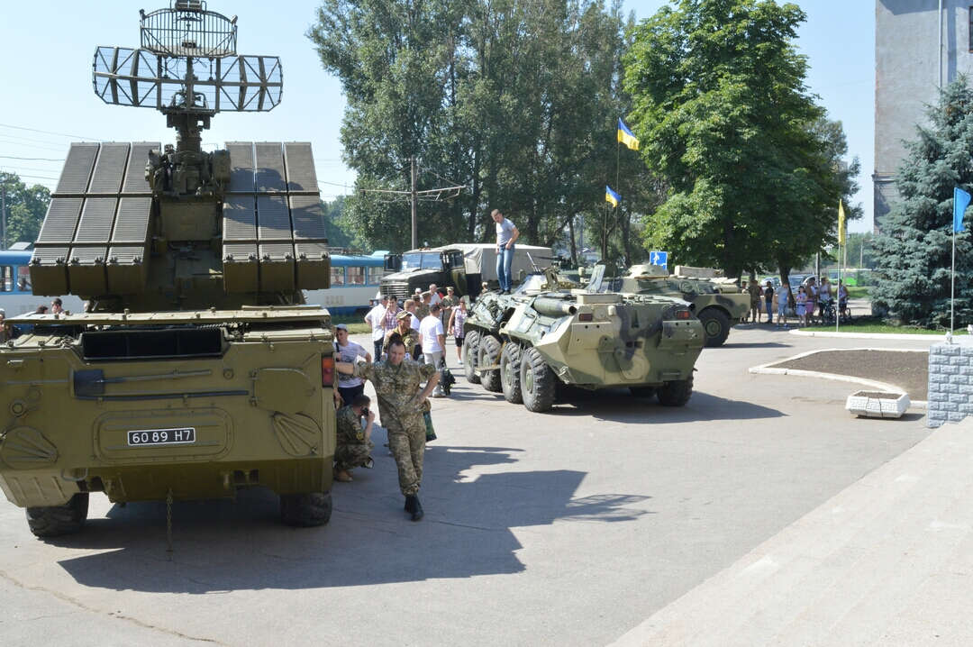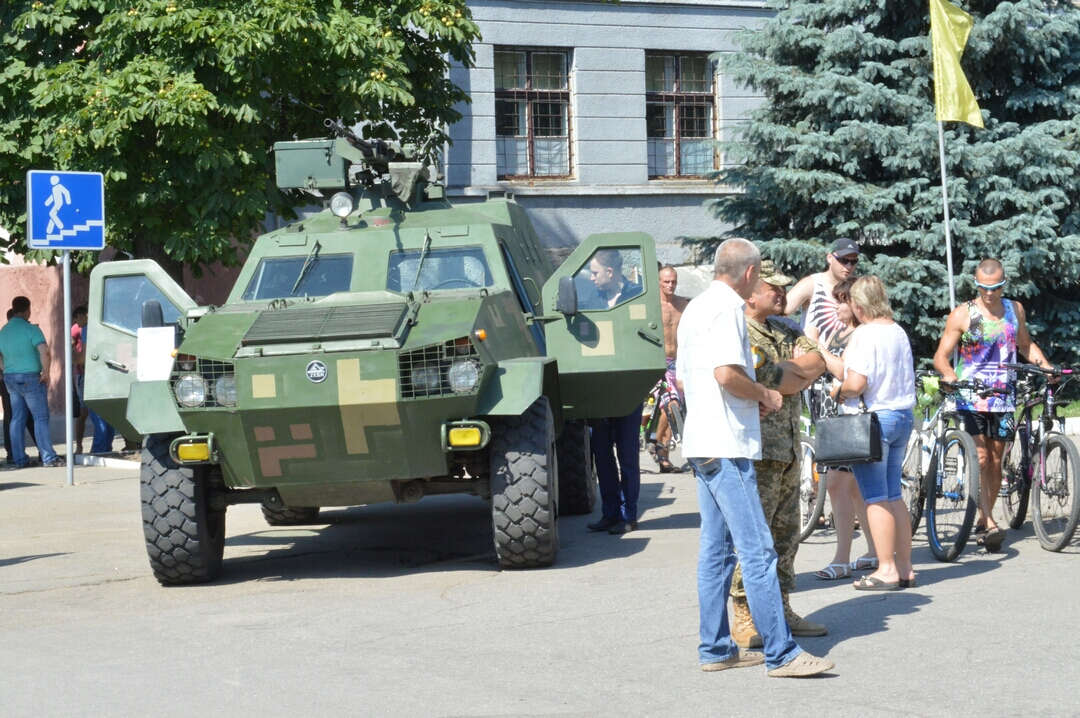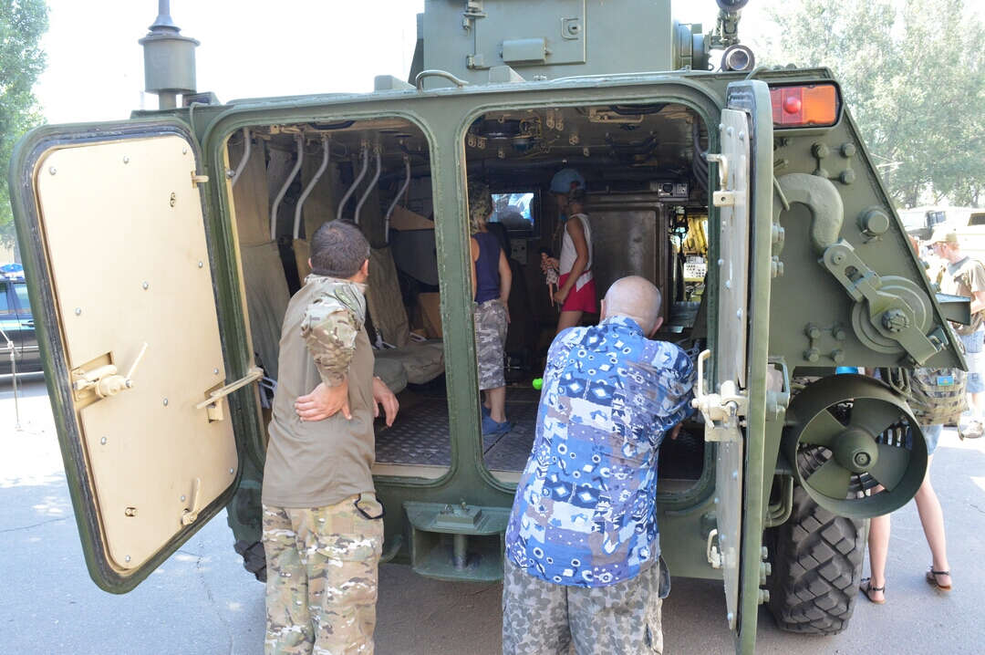Ukrayna’nın Harkiv şehrinde Ukrayna Silahlı Kuvvetleri askerleri kullandıkları askeri teçhizatı vatandaşlara sergiledi.