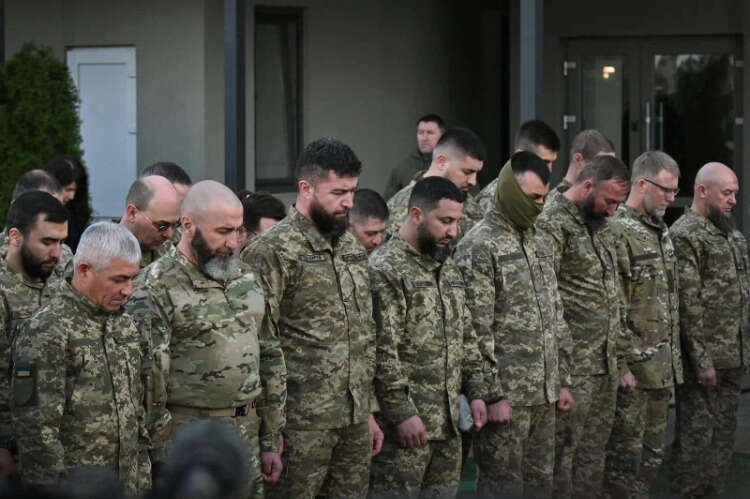 Rus saldırılarına karşı Ukrayna'da vatan mücadelesi veren Müslüman askerler iftar programında en başta yer aldı.