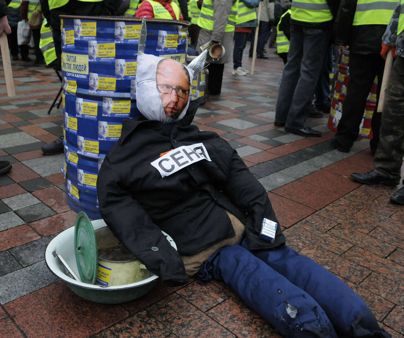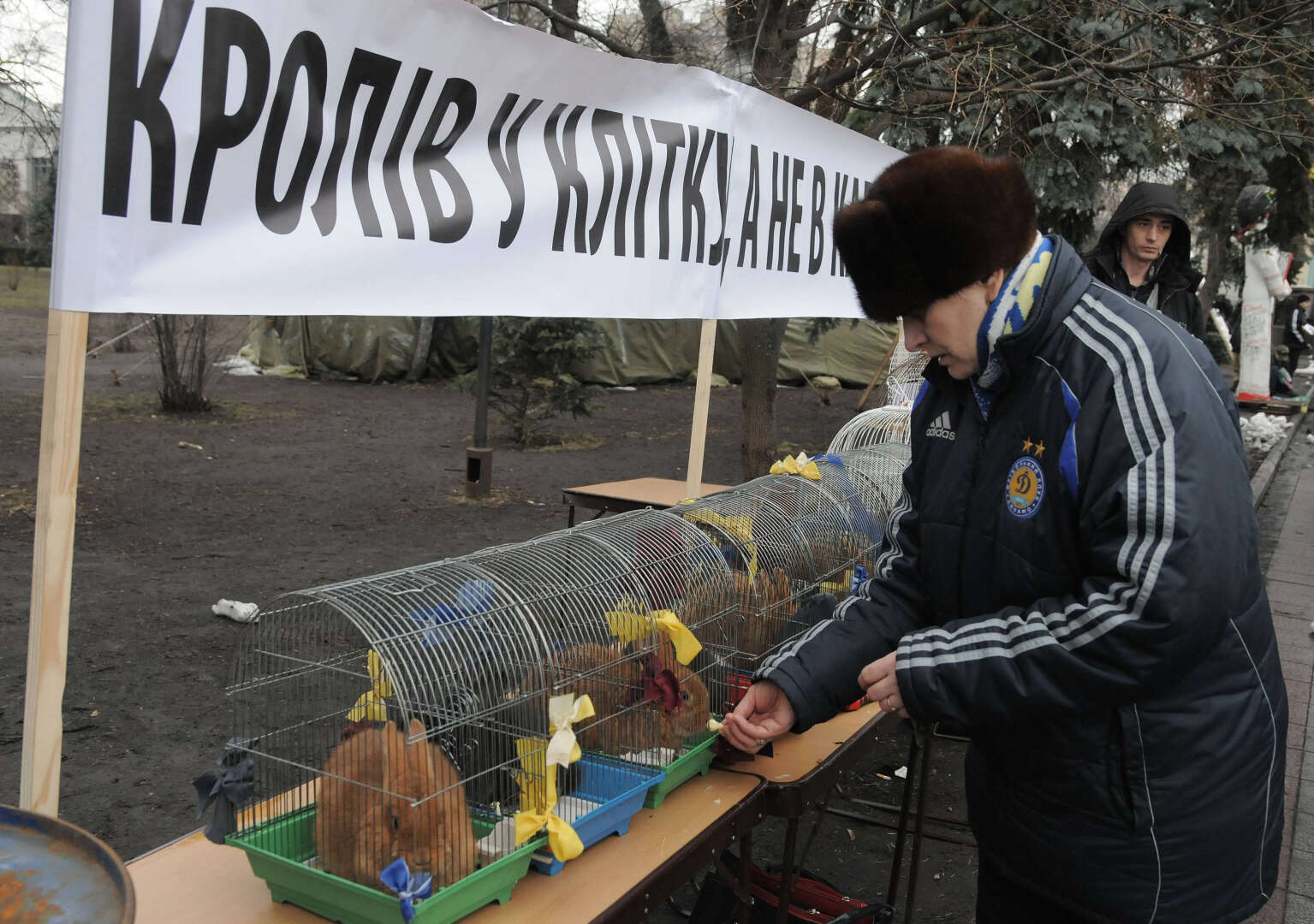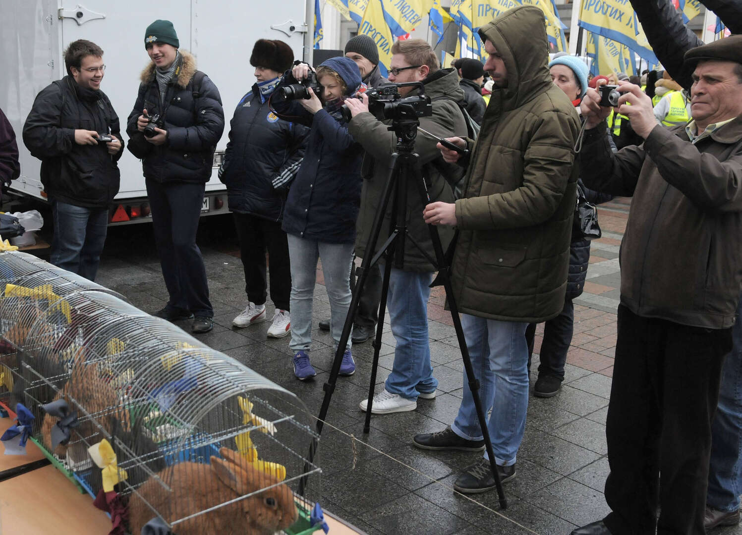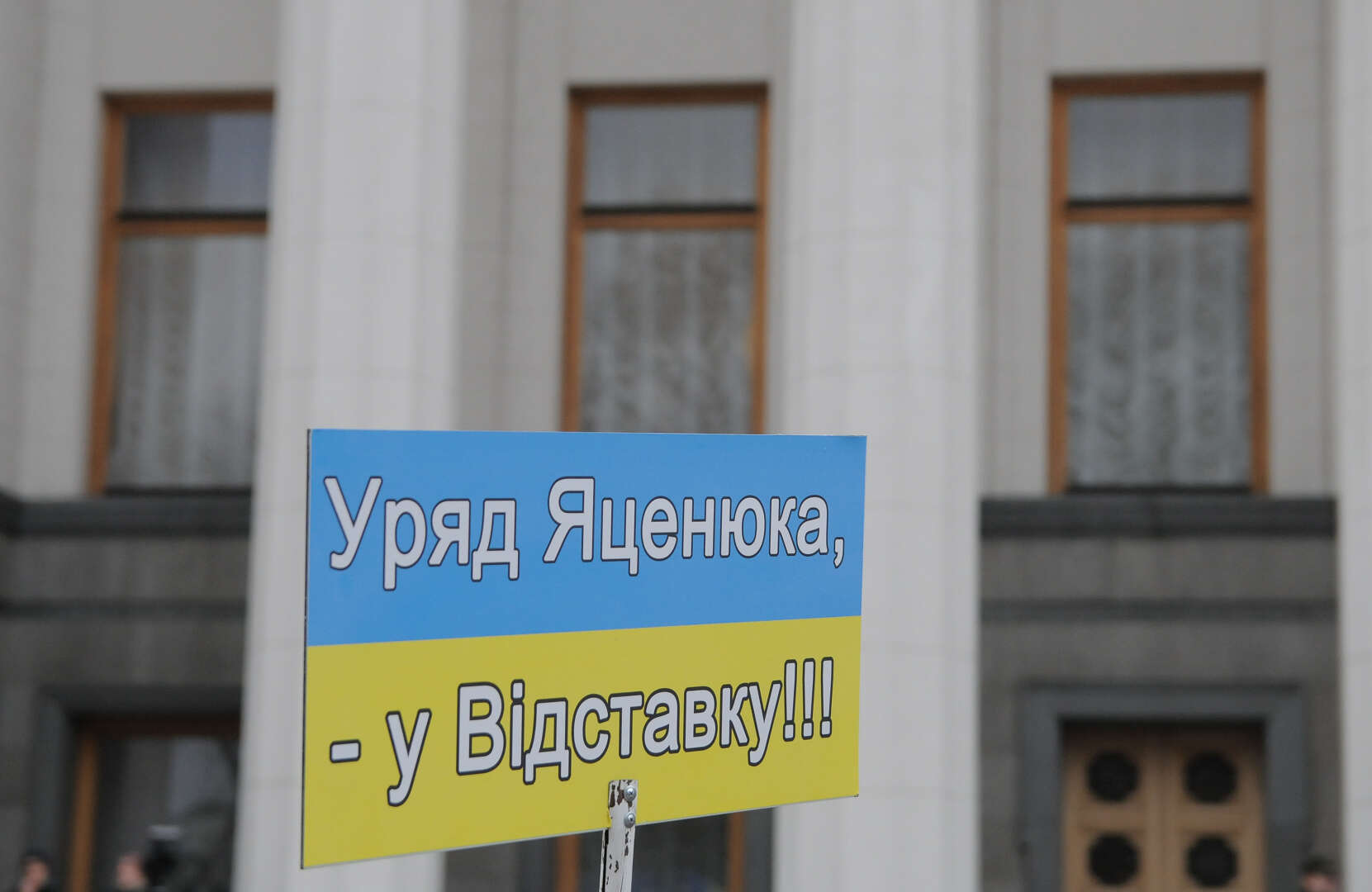 Hükümetin istifasını isteyenler Ukrayna Parlamentosu önünde miting düzenledi. Eylemciler, mitinge Ukrayna Başbakanı Arseniy Yaysenyuk’un kuklası, canlı tavşanlar ve horoz getirdi.