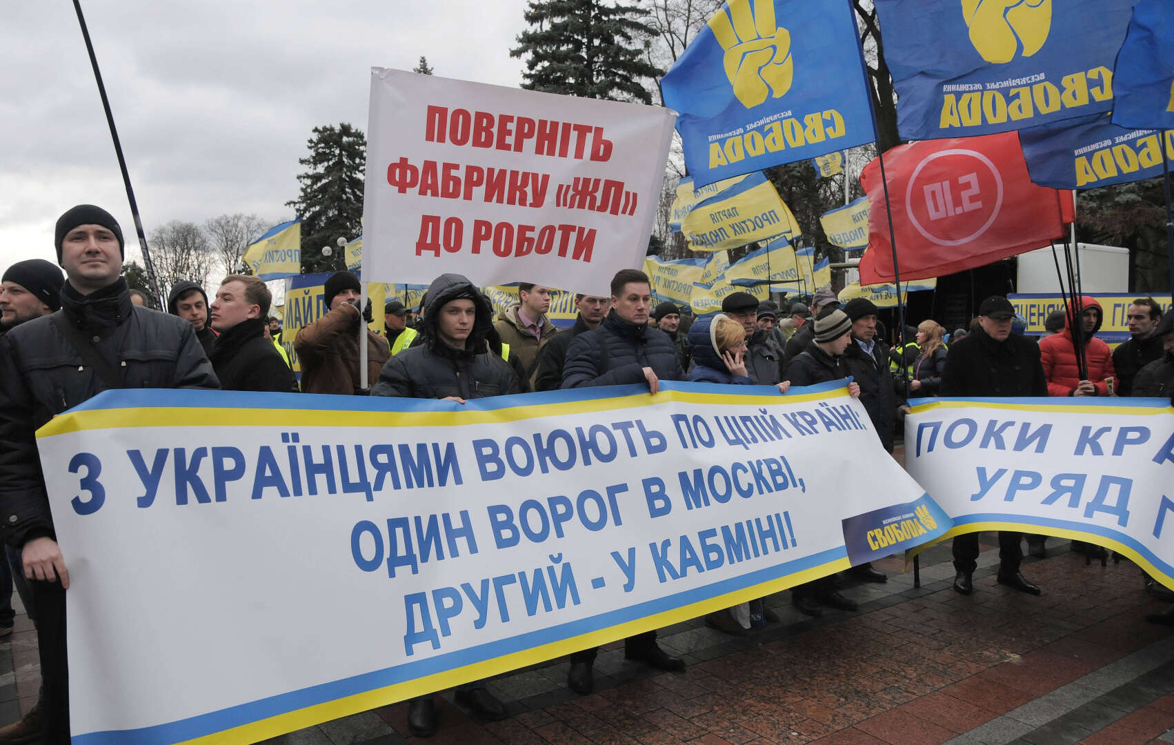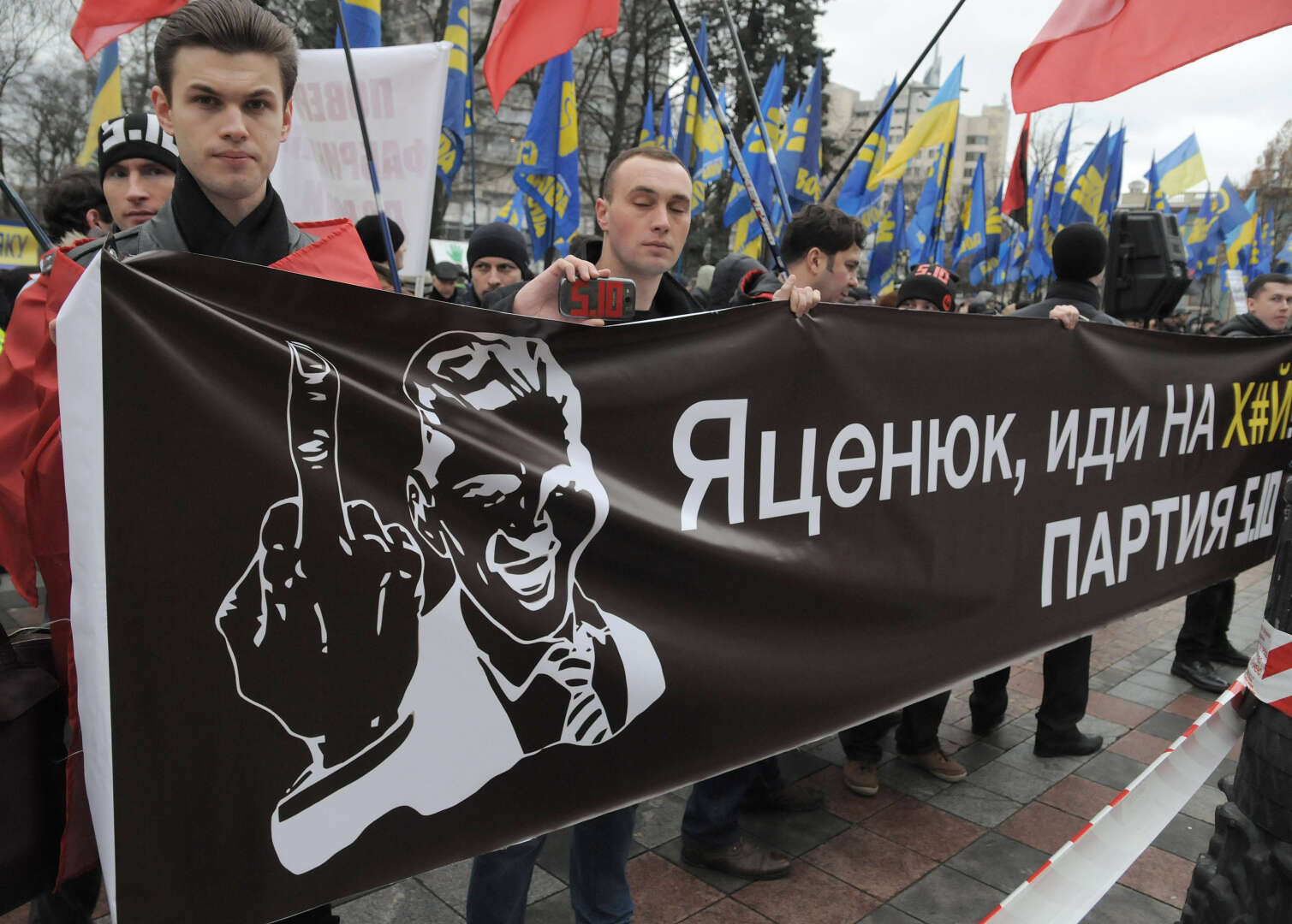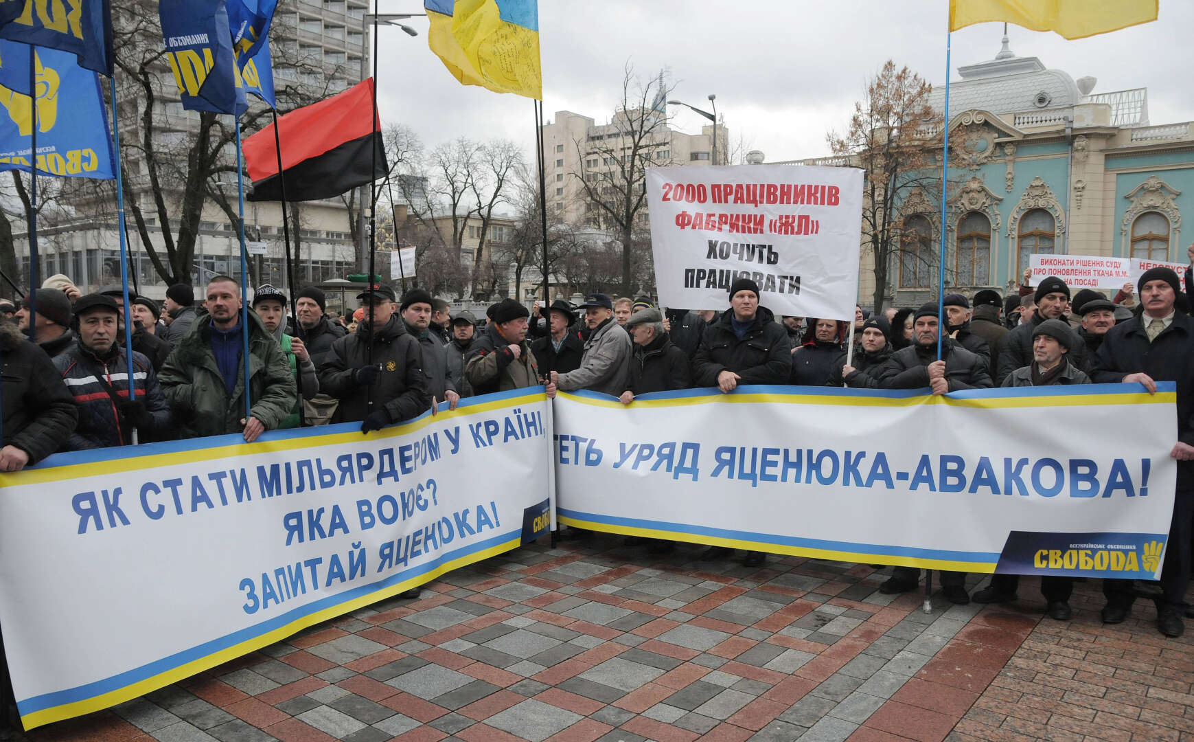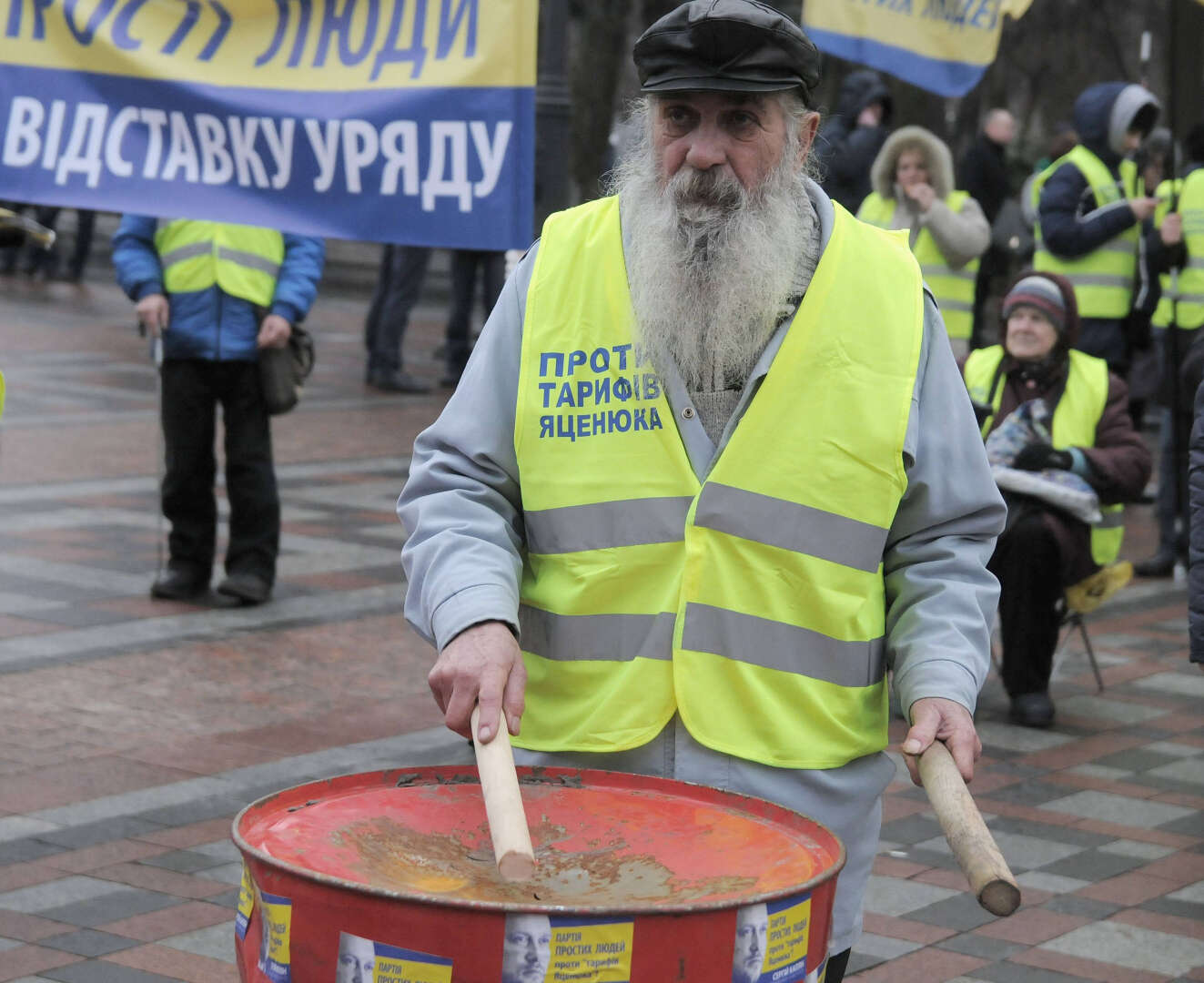 Hükümetin istifasını isteyenler Ukrayna Parlamentosu önünde miting düzenledi. Eylemciler, mitinge Ukrayna Başbakanı Arseniy Yaysenyuk’un kuklası, canlı tavşanlar ve horoz getirdi.