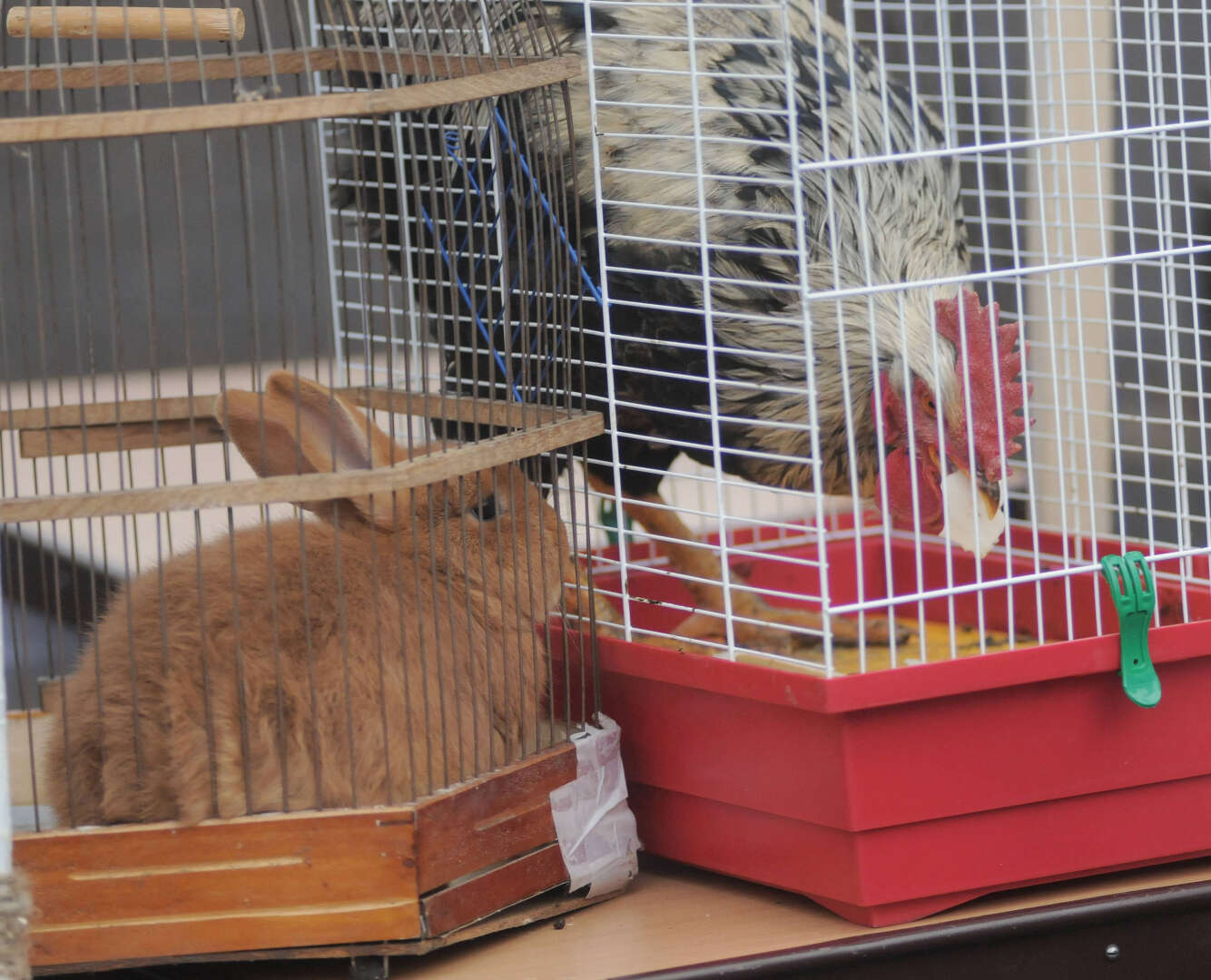 Tavşanların bulunduğu kafeslerin üzerinde ‘Tavşanlar, Bakanlar Kurulu’nda değil kafeslerde oturmalı’ diye yazıldı.