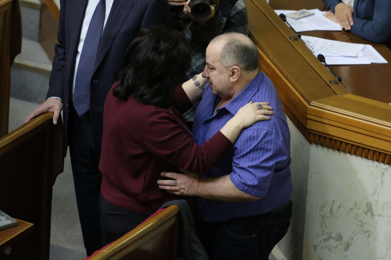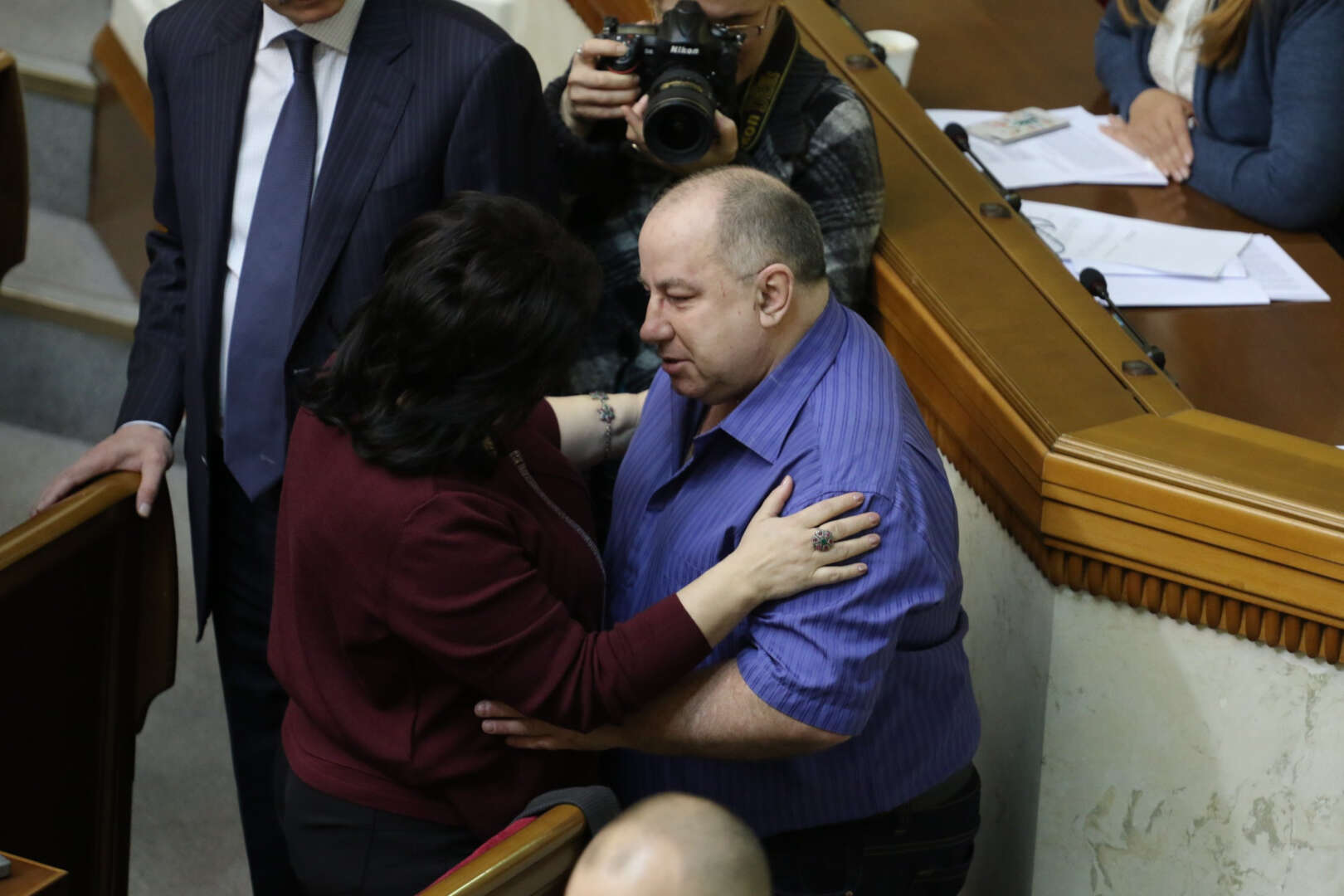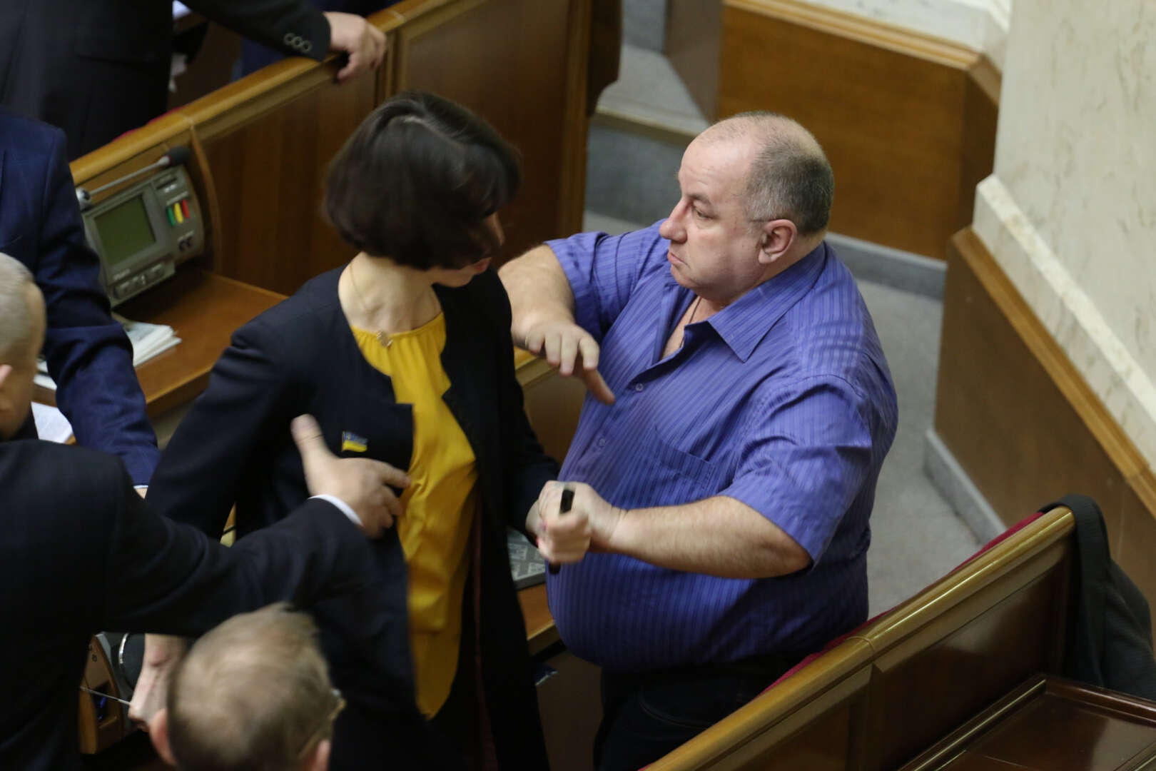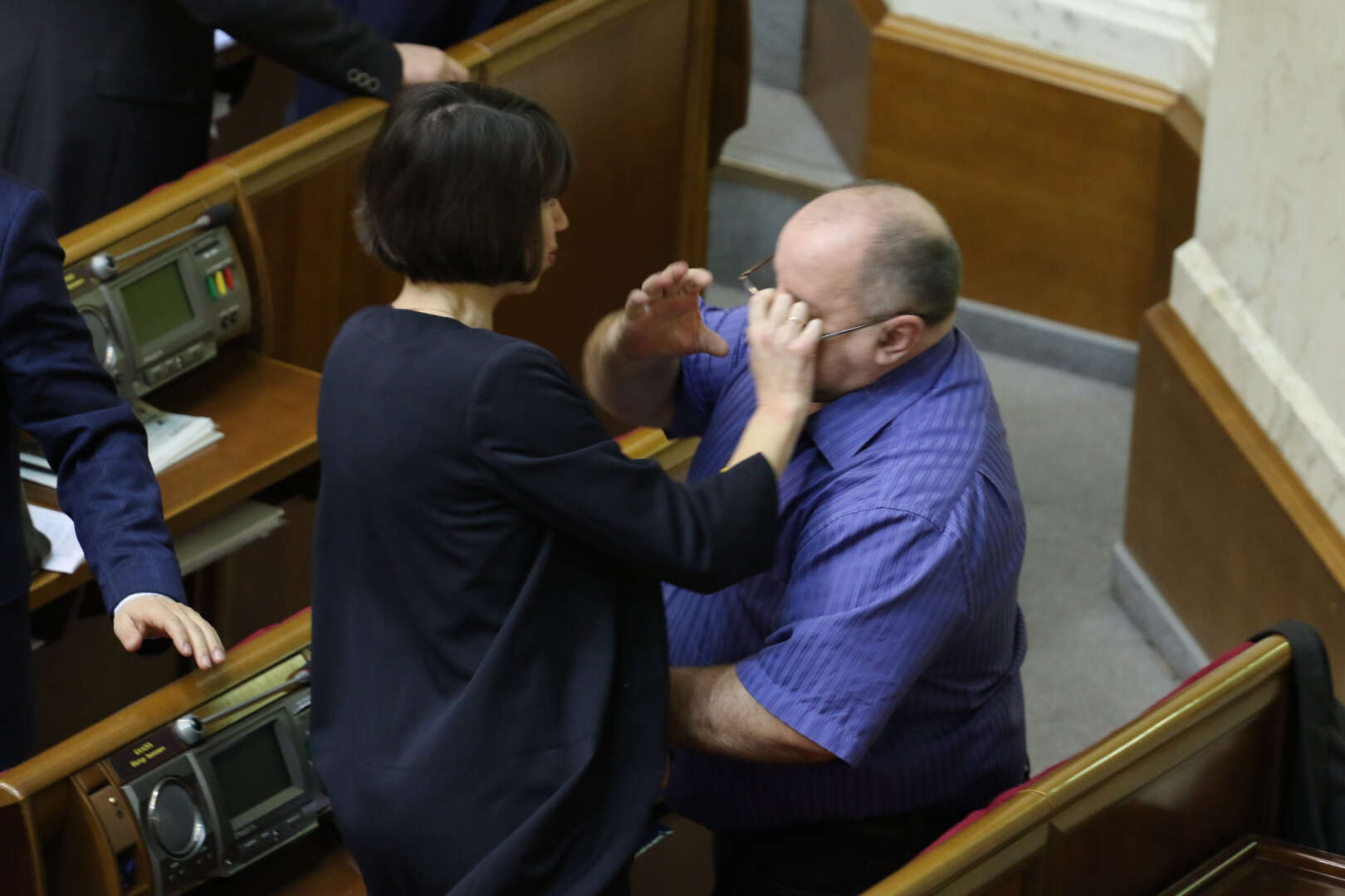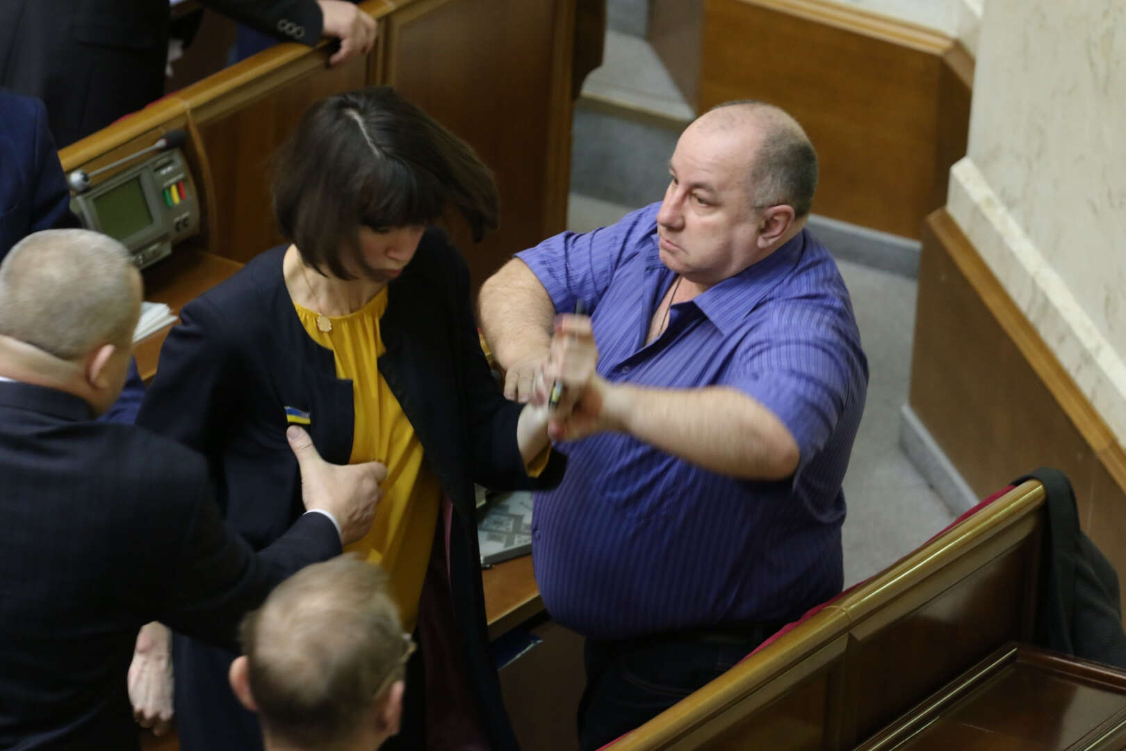 Ukrayna Parlamentosu’nda Halk Cephesi Partisi’nin üyeleri Tatyana Çernovol ve Sergey Paşinskiy, rahat durmuyor.