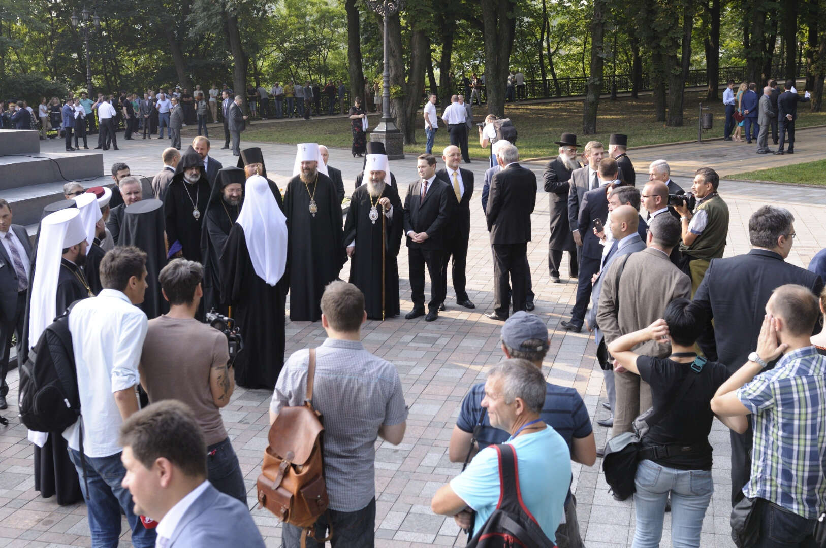 Kiev Rusyası’nın Hristiyanlığı kabul edişinin yıldönümünü dolayısıyla düzenlenen ayine Ukrayna Cumhurbaşkanı, Bakanlar Kurulu üyeleri ve tüm Ukrayna kiliselerinin liderleri katıldı.