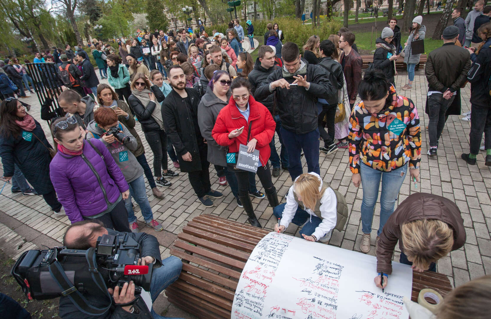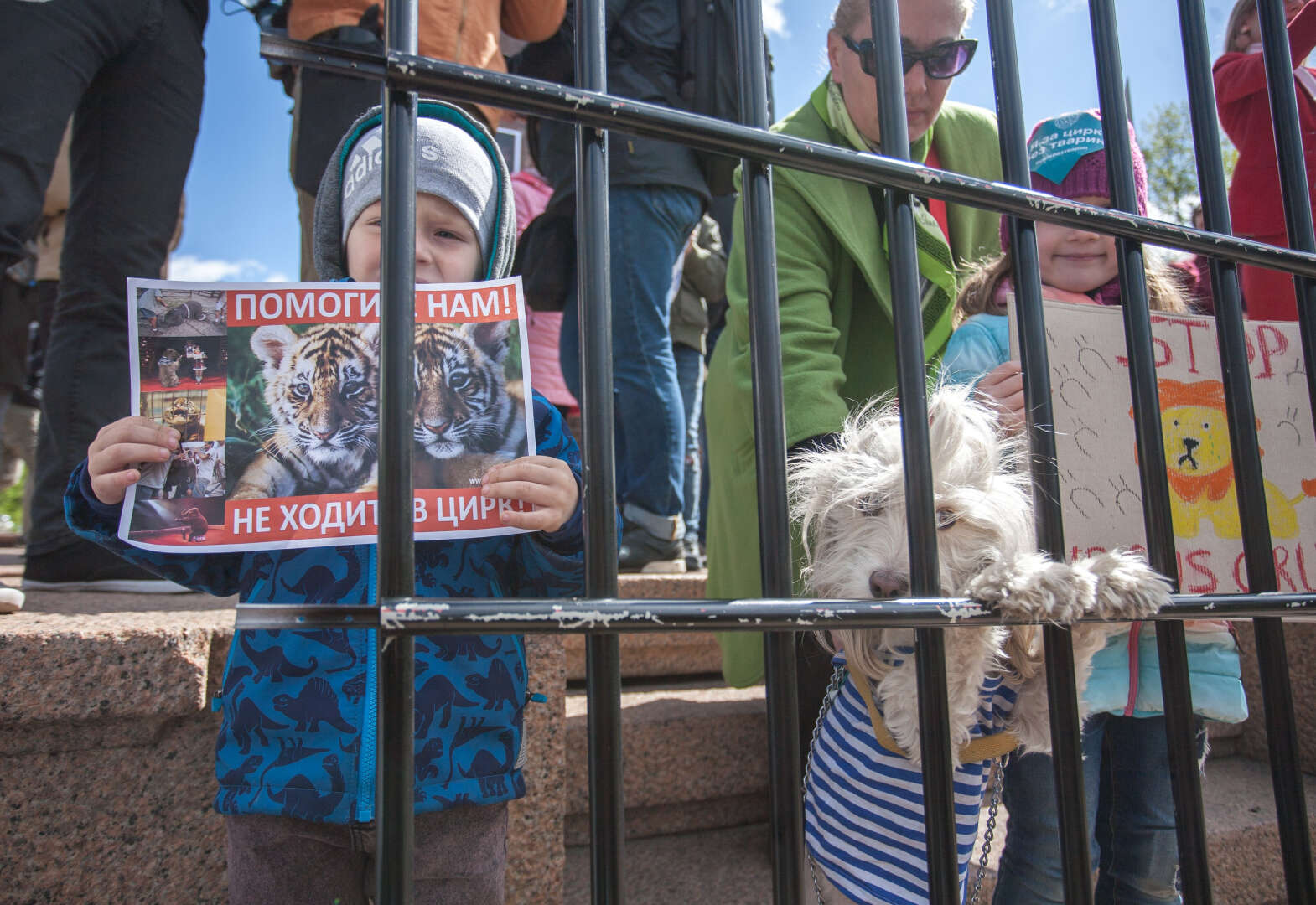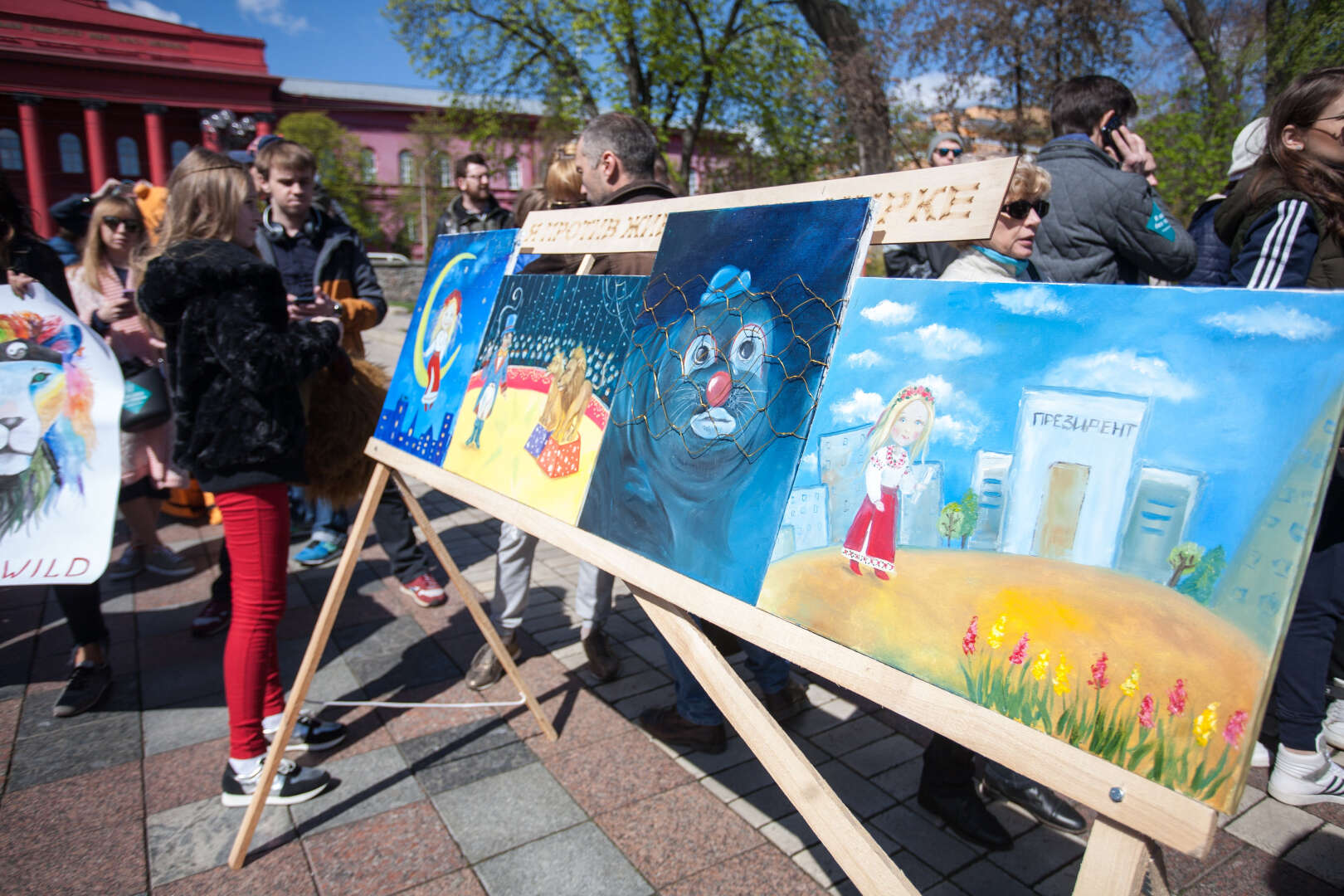 Yüzlerce Kiev sakini “Hayvansız Sirk” için toplandı