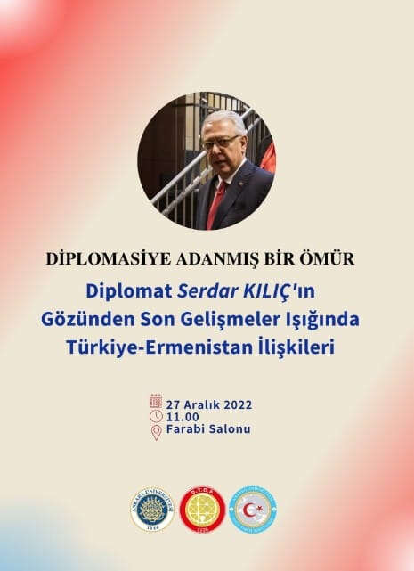 Ankara Üniversitesi Dil ve Tarih Coğrafya Fakültesi Farabi Salonu'nda, 27 Aralık 2022 tarihinde Türkiye Cumhuriyeti Ermenistan Özel Temsilcisi Diplomat Serdar Kılıç, gündemdeki Türkiye-Ermenistan ilişkilerini anlatacak.