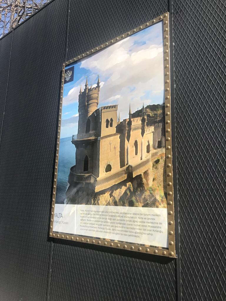 Yalta’da bulunan “Kırlangıç Yuvası” kalesinin resmini büyükelçilik binalarına asan Ruslar, Kırım’ı da kendi topraklarının bir parçası gibi gösterdi.