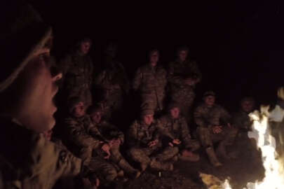 Türkiye Cumhuriyeti Milli Savunma Bakanlığı bugün dağların zirvesinde vatan nöbeti tutan kahraman Türk komandolarının ateş başında "Deniz Üstü Köpürür" türküsünü söylediği anları paylaştı.