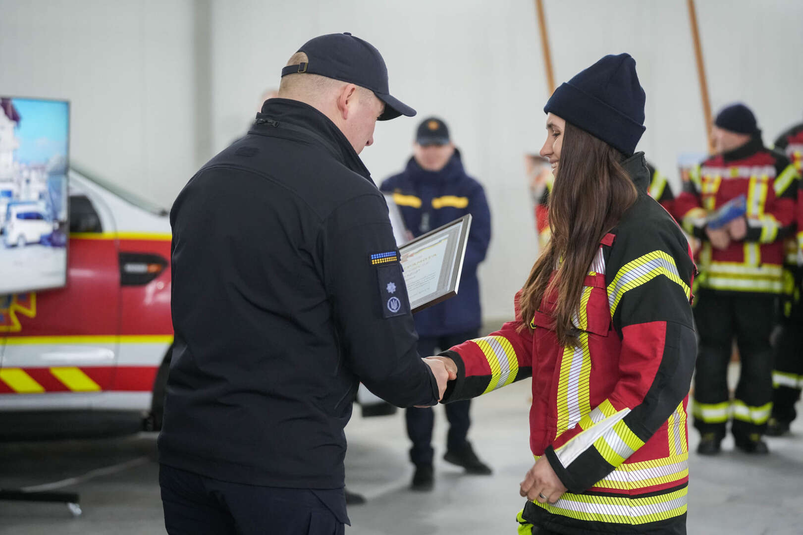 Ukrayna Acil Durumlar Servisi yönetimi, Türkiye’de yaşanan şiddetli depremlerin ardından yapılan arama kurtarma çalışmalarında üstün performans sergileyen arama kurtarma görevlilerini ödüllendirdi. Ödül törenine Ukrayna Acil Durumlar Servisi Başkanı Sergiy Kruk, Ukrayna Acil Durumlar Servisi Başkan Yardımcısı Maksım Grıtsayenko, Türkiye’nin Kıyiv Büyükelçisi Yağmur Ahmet Güldere katıldı. Büyükelçi Güldere, kurtarma ekibine bir minnettarlık göstergesi olarak Türkiye ve Ukrayna halkları arasındaki dostluğu sembolize eden bir resim hediye etti.