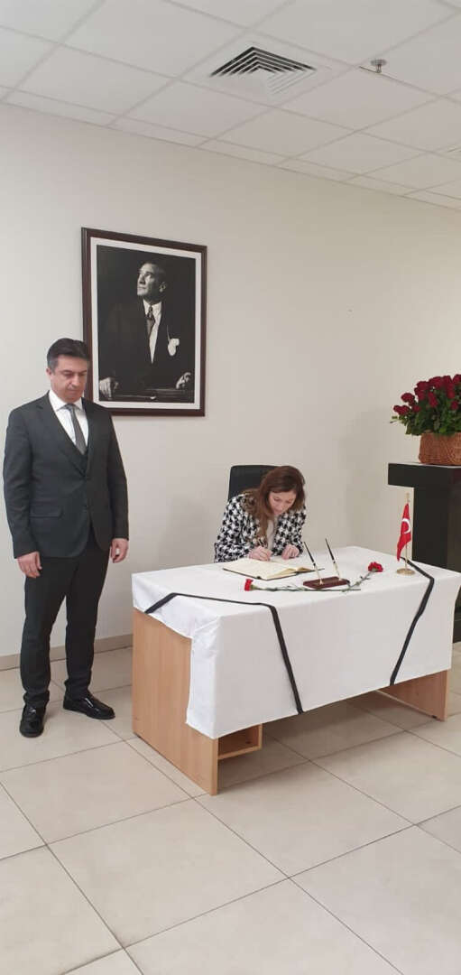 Ukrayna First Lady'si Olena Zelenska, Ukrayna Parlamento Başkanı Ruslan Stefançuk, Ukrayna Cumhurbaşkanlığı İdaresi Başkan Yardımcısı ve Eski Ukrayna'nın Ankara Büyükelçisi Andriy Sıbiga, Ukrayna Dışişleri Bakan Yardımcısı Emine Ceppar ve Ukrayna Cumhurbaşkanının Kırım Özerk Cumhuriyeti Daimi Temsilcisi Tamila Taşeva, Kırım Tatarlarının milli lideri, Ukrayna Milletvekili Mustafa Abdülcemil Kırımoğlu, Kırım Tatar Milli Meclisi Başkanı Refat Çubarov ve pek çok yetkili farklı günlerde Türkiye'nin Kıyiv Büyükelçiliğini ziyaret ederek taziye defterini imzaladı.