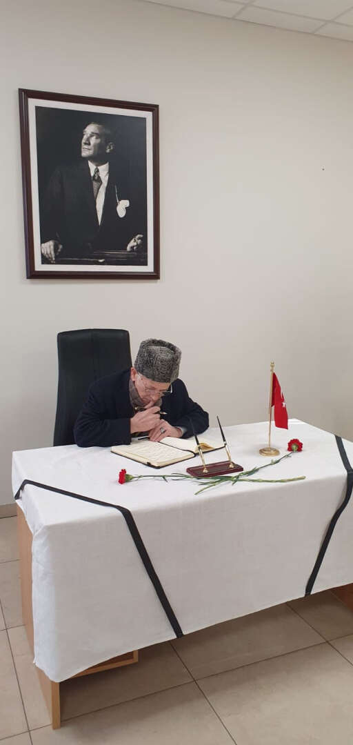 Kırım Tatar halkının milli lideri Mustafa Abdülcemil Kırımoğlu, Ukrayna’nın Arap ve Müslüman Devletlerle Etkileşiminden Sorumlu İstişare Kurulu Sekreteri Snaver Seythalil ve Kırım Milli Varlık Vakfı Başkanı Lenur Mambetov ile Türkiye’nin Kıyiv Büyükelçiliğini ziyaret ederek başsağlığı dileklerinde bulundu.
