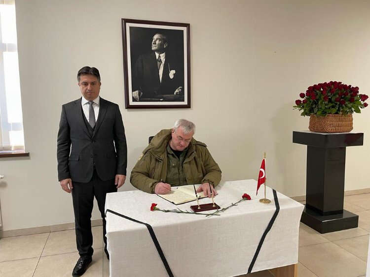 Ukraynalı üst düzey yetkililer, Türkiye’nin Kıyiv Büyükelçiliğini ziyaret ederek deprem nedeniyle hayatını kaybedenler için başsağlığı dileklerinde bulundu ve taziye defterini imzaladı.
