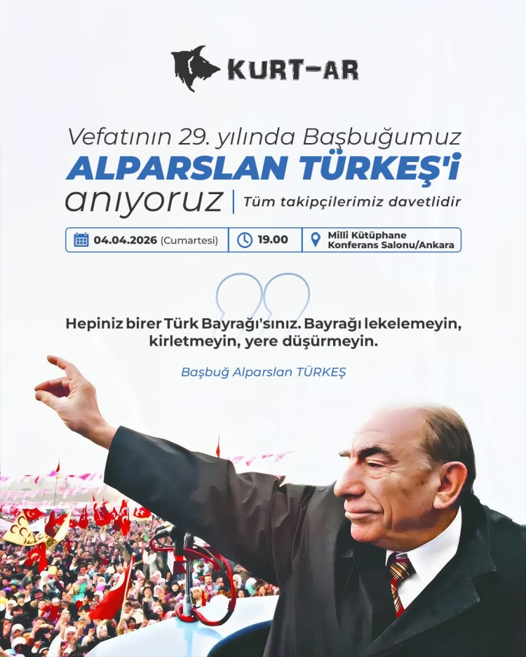 Kurt-Ar Derneği tarafından, Türk siyasetinin önemli isimlerinden Alparslan Türkeş’in vefatının 29. yıl dönümü dolayısıyla Ankara’da bir anma programı yapılacak.