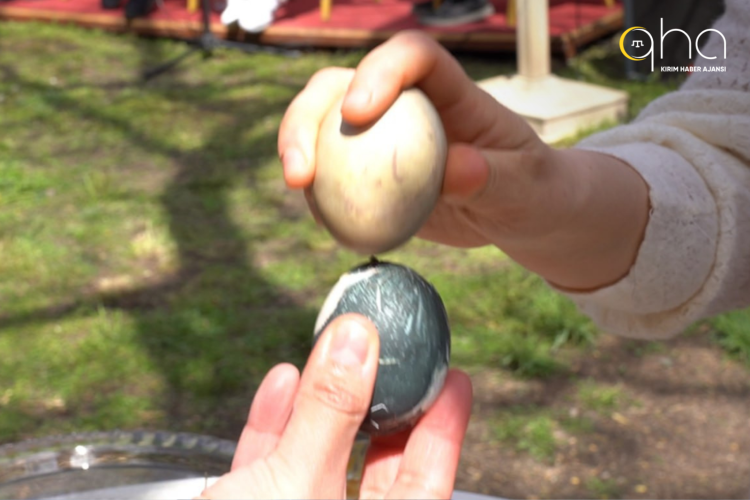 Açılış konuşmalarından sonra UNESCO Türkiye Millî Komisyonu Başkanı Oğuz ve YEE Başkanı Aliy kök boyalarla boyanmış Nevruz yumurtalarını tokuşturdu.