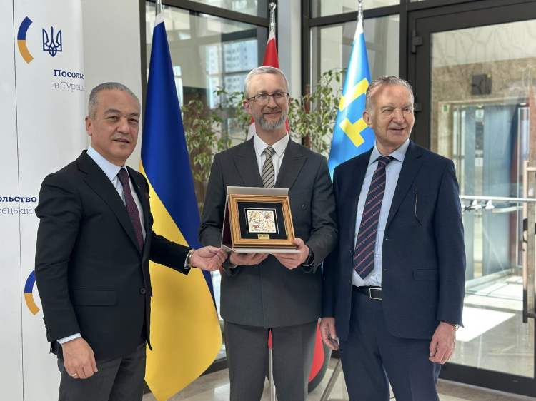 Büyükelçi Nariman Celâl'in Ukrayna-Türkiye İş Konseyinin yeni seçilen Başkanı Ziya Uzel ve beraberindeki yönetim kurulu üyeleri ile gerçekleştirdiği görüşmede; ikili ticaretin mevcut durumu ve geliştirilmesine yönelik perspektifler, yatırım iş birliğinin derinleştirilmesi ve Türk iş dünyasının Ukrayna’nın yeniden inşa projelerine katılımı ile Rusya Federasyonu’nun son dönemde gerçekleştirdiği geniş çaplı saldırıların sonuçlarının giderilmesine yönelik yardımların koordine edilmesi konuları ele alındı.