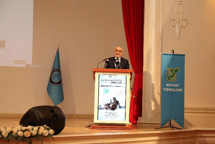 Rektör Yardımcısı Prof. Dr. Ramazan Bayındır ise Nogay Türklerinin, 18. ve 19. yüzyıldaki zorunlu göçlerle Anadolu’ya gelerek yerleşen, asıl yurtları Kuzey Kafkasya olan bir Kıpçak-Türk boyu olduğunu dile getirdi.