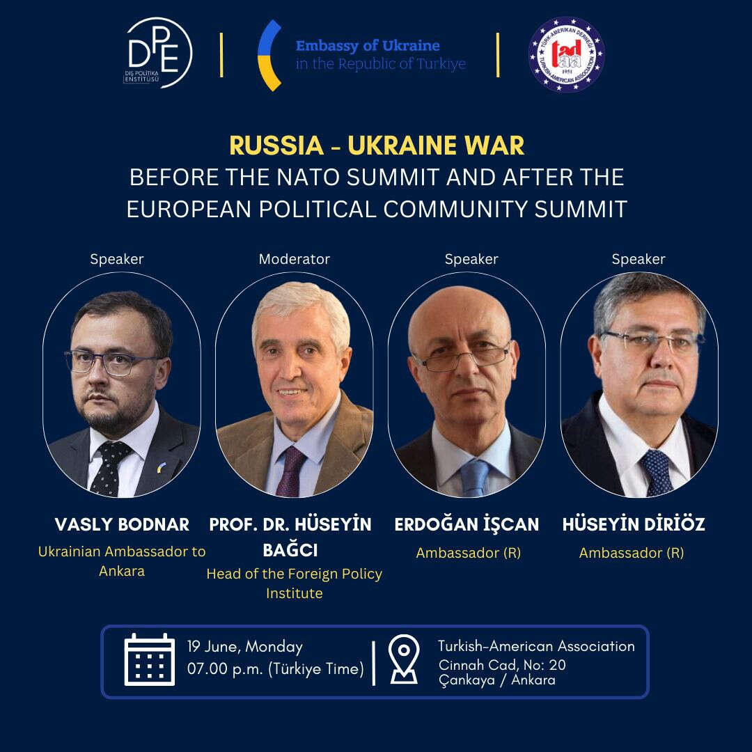 Ukrayna'nın Ankara Büyükelçiliği, Türk Amerikan Derneği ve Dış Politika Enstitüsünün ortaklaşa düzenlediği Ukrayna'nın NATO üyeliği ihtimalinin bölgeye ve Türkiye'ye etkilerini konu alan konferans, 19 Haziran 2023 tarihinde gerçekleşecek.