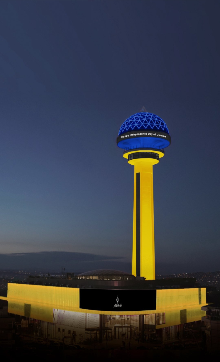 Bağımsızlık Günü vesilesiyle Ankara'daki Atakule'de Ukrayna bayrağı yansıtılırken, İstanbul'da Fatih Sultan Mehmet Köprüsü mavi-sarı renklerle süslendi.