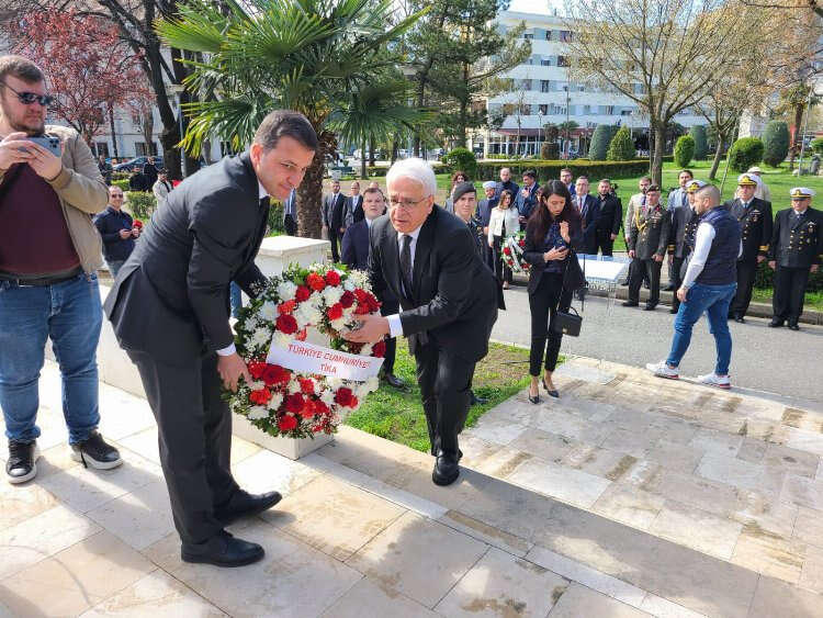 Anma programı çerçevesinde ilk olarak kentteki Hasan Rıza Paşa Anıtı'na çelenk bırakıldı. Burada konuşma yapan Büyükelçi Atay, her sene olduğu gibi bu sene de kentte anma günü etkinliği düzenlediklerini söyledi. Hem Çanakkale Zaferi'ni hem de İstiklal Marşı'nın kabulünü kutladıklarına dikkat çeken Atay konuşmasında, “Çanakkale Zaferi de Türk milletinin azmi ve vatan sevgisiyle olumsuz koşulların üstesinden gelinebildiğini göstermiş, ulusumuzun mücadeleci ruhunun Kurtuluş Savaşımızda ve Türkiye Cumhuriyeti’nin kuruluşunda yolumuzu aydınlattığı bir dönüm noktası olmuştur. Türk ulusu küllerinden yeniden doğmuş, birlik ve beraberliğini tüm dünyaya ilan etmiştir" ifadelerini kullandı.