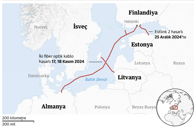 19 Kasım 2024 tarihinde Baltık Denizi'nde Finlandiya ile Almanya ve İsveç ile Litvanya arasında bağlantı kuran deniz altı telekomünikasyon kablolarında hasar meydana gelmişti. Amerika Birleşik Devletleri'nin (ABD) Moskova'nın kritik deniz altı altyapısını hedef alabileceği uyarısının ardından birkaç hafta sonra dört ülkeyi birbirine bağlayan kabloların hasar alması, Avrupalı yetkililerin gözlerini Rusya'ya çevirmesine sebep oldu.