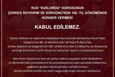 "Zulüm, katliam ve soykırımla özdeşleşen Rus Kızıl Ordu Korosu'nun Kırım Tatar Sürgünü'nün 80. yıl dönümü olan 18 Mayıs'ta Bursa'da, Çerkes Sürgünü ve Soykırımı'nın 160. yıl dönümü olan 21 Mayıs'ta ise Antalya'da vereceği konserlerin tarihi Rusya'nın bilinçli bir seçimi ve provakasyonudur.