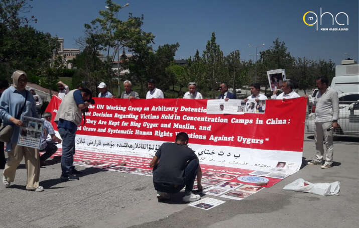 Türkiye'de yaşamını sürdüren toplama kampı mağdurlarının yakınları ve avukatları bugün saat 13.30'da Birleşmiş Milletler (BM) Keyfi Gözaltı Çalışma Grubu'na yaptıkları başvurulardan çıkan kararın uygulanması için Çin'in Ankara Büyükelçiliği önünde toplandı. Çok sayıda polisin bulunduğu protesto gösterisine; İstanbul'da Uygur Türkleri tarafından kurulan Kamp Mağdurları Platformu'ndaki mağdurların Avukatı Gülden Sönmez ve beraberindeki avukatlar, Türk Ocakları Genel Merkezi yetkilileri, toplama kampı mağdularının yakınları ve akademisyenler katıldı.