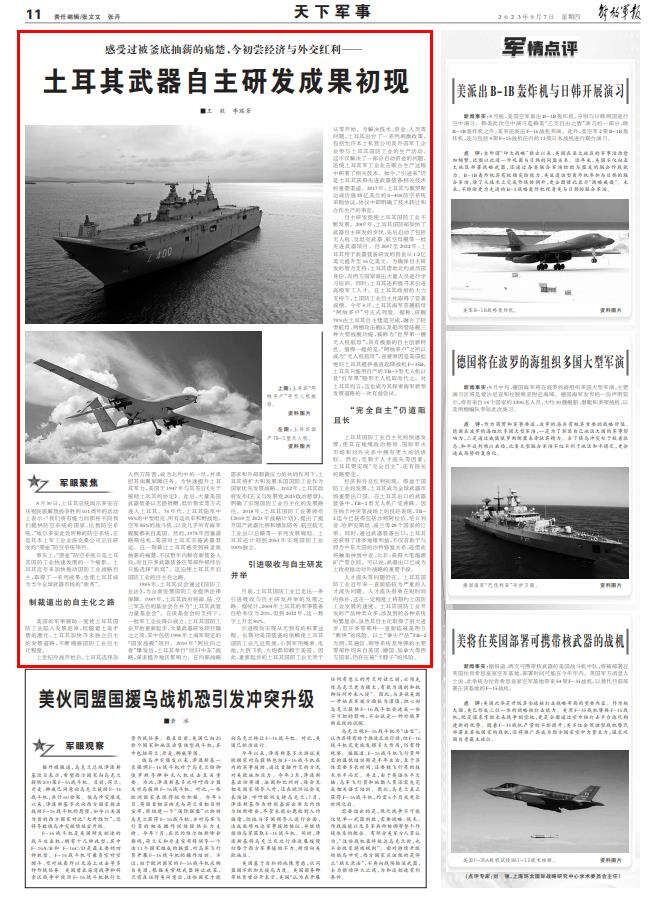 Çin, Türk savunma sanayi kuruluşlarını yakından incelemeyi sürdürüyor. Çin Ordu Gazetesi daha önce Baykar Teknolojinin ürettiği SİHA ve İHA'lara ilişkin analiz haberi yayımlamıştı. Çin Ordu Gazetesi, bu kez 7 Eylül 2023 tarihli analiz haberinde, Türk savunma sanayi ürünlerinin bağımsız gelişimine ve bunun önemine dikkat çekti.