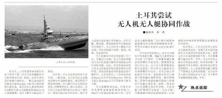 Türk savunma sanayisinin son yıllardaki hızının incelendiği raporda, "(Türkiye'de) son yıllarda insansız ekipmanların gelişimi hızlandı. İHA ve İDA ortak operasyonları, insansız sistemlerin karmaşık görevleri tamamlama yeteneğini geliştirmek amacıyla hava-deniz üç boyutlu işbirlikçi bir sistem oluşturmak için her ikisinin avantajlarını birleştirebilir. Fırkateyn, destroyer ve konvansiyonel denizaltı gibi insanlı gemilerin yokluğunda, drone ve insansız botların etkin işbirliği, istihbarat, gözetleme, keşif, saldırı ve diğer görevleri uzun süre yerine getirebilmektedir" ifadelerine yer verildi.