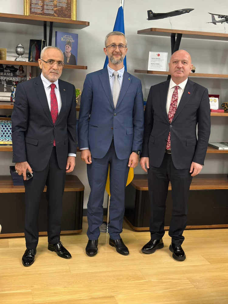 Türkiye Cumhurbaşkanı Başdanışmanı Yalçın Topçu ve AK Parti eski Ordu Milletvekili Metin Gündoğdu, Ukrayna'nın Ankara Büyükelçisi Nariman Celâl'i ziyaret etti.