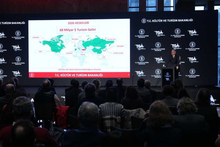 Bakan Ersoy'un toplantıda paylaştığı hedeflere göre, Türkiye'nin 2026 yılı turizm geliri 68 milyar dolar seviyesinde bekleniyor.