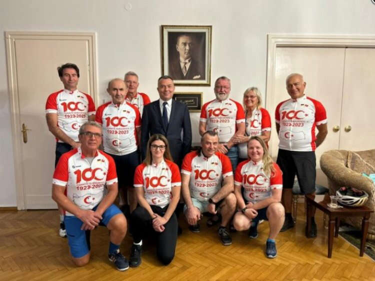 Köln Türk Alman Dostluk Derneği üyelerinden 10 kişilik grup, Türkiye Cumhuriyeti'nin kuruluşunun 100. yılı için bisikletleriyle Türkiye'nin başkenti Ankara'ya doğru yola çıktı.