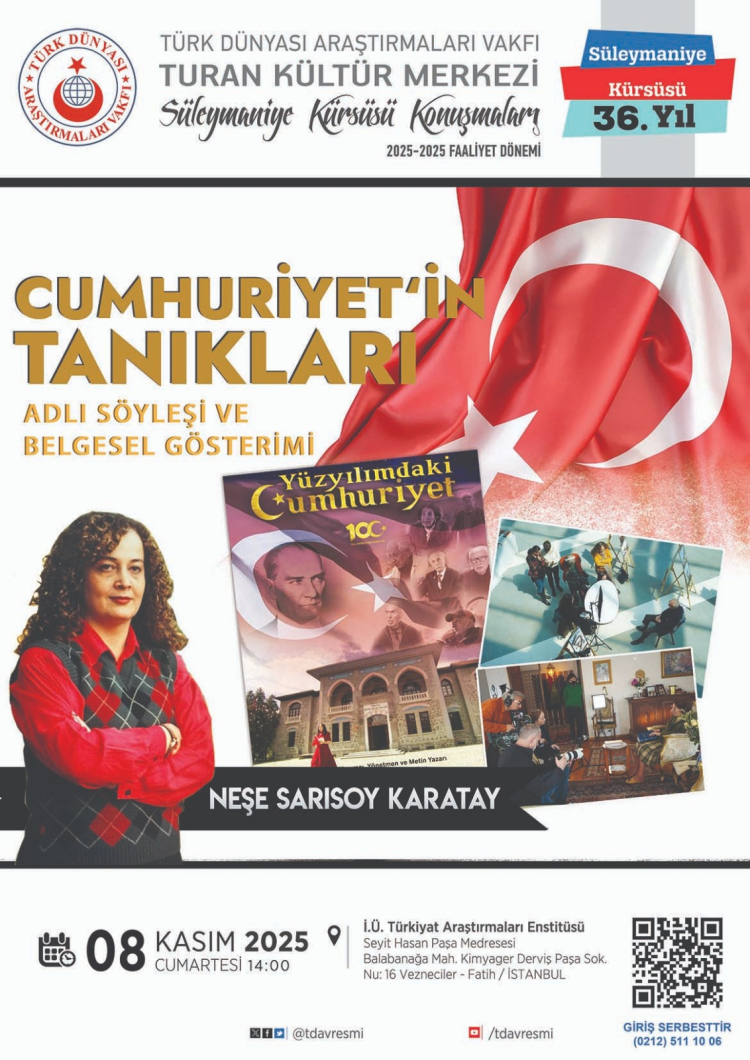 Öte yandan 8 Kasım 2025 tarihinde ise Türk Dünyası Araştırmaları Vakfının Turan Kültür Merkezi Süleymaniye Kürsüsü Konuşmaları kapsamında belgesel gösterimi ve söyleşi tertip edilecek. Saat 14.00'te İstanbul Üniversitesi Türkiyat Araştırmaları Enstitüsü'nde yapılacak belgesel gösteriminin ardından Neşe Sarısoy Karatay söyleşi yapacak.