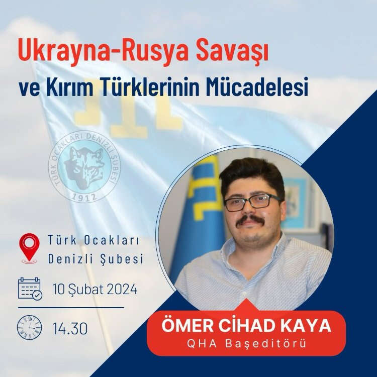 QHA Başeditörü Ömer Cihad Kaya, 10 Şubat'ta Türk Ocakları Denizli Şubesinde "Ukrayna-Rusya Savaşı ve Kırım Türklerinin Mücadelesi" konulu konferansta konuşmacı olarak yer alacak.
