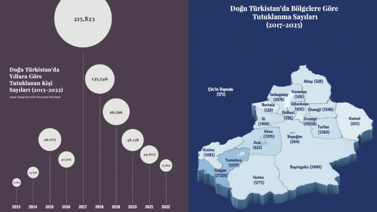 Endekste ayrıca dini pratiklere yönelik sınırlamaların süreklilik kazandığı “dini baskı” boyutu ele alınırken, Doğu Türkistan dışındaki topluluklara yönelik takip ve baskı mekanizmaları da “sınırötesi baskı” kapsamında incelendi. “Zorla çalıştırma ve işçi transferi” başlığında, zorla çalıştırma yöntemlerinin sürdüğü ve sistematik bir işçi transfer politikasının uygulandığı tespiti paylaşıldı. “Sansür ve kısıtlama” bölümünde ise fiziksel kısıtlamalara ek olarak dijital alandaki müdahalelerin arttığı, çevrim içi alanın da denetim ve kontrol politikalarına daha yoğun biçimde dahil edildiği ifade edildi.