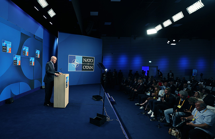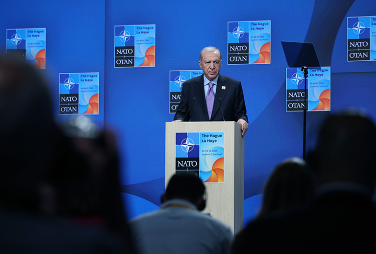 Türkiye Cumhuriyeti Cumhurbaşkanı Recep Tayyip Erdoğan, 25 Haziran 2025 tarihinde Hollanda'nın Lahey kentindeki NATO Devlet ve Hükûmet Başkanları Zirvesi'nin ardından basın toplantısı düzenledi.