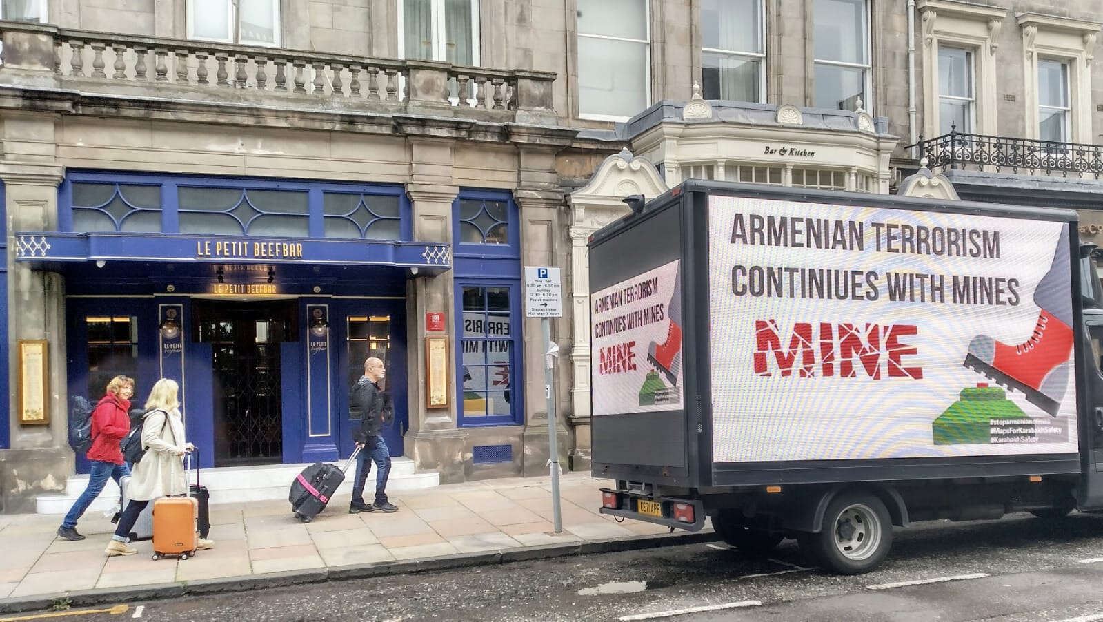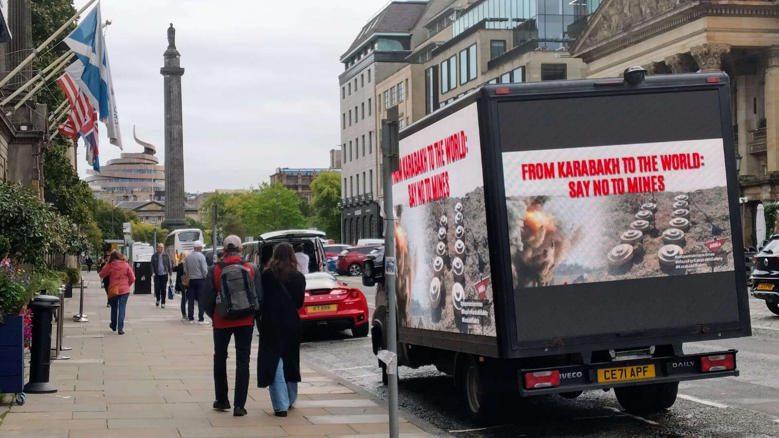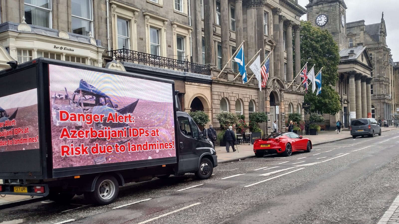 Birleşik Krallık Azerbaycan Topluluğu'nun düzenlediği eylem sırasında, üzerinde çeşitli sloganların ve bilgilerin yer aldığı LED ekranlı kamyonlar, Edinburgh'un kalabalık merkezi caddelerinde dolaştı. 8 saat süren eylem boyunca araç Edinburgh'un Royal Mile, Princess Street, George Street, Victoria Street, High Street, North Bridge, Castle Street ve diğer caddelerinden geçerek bölge sakinlerinin dikkatini çekti.