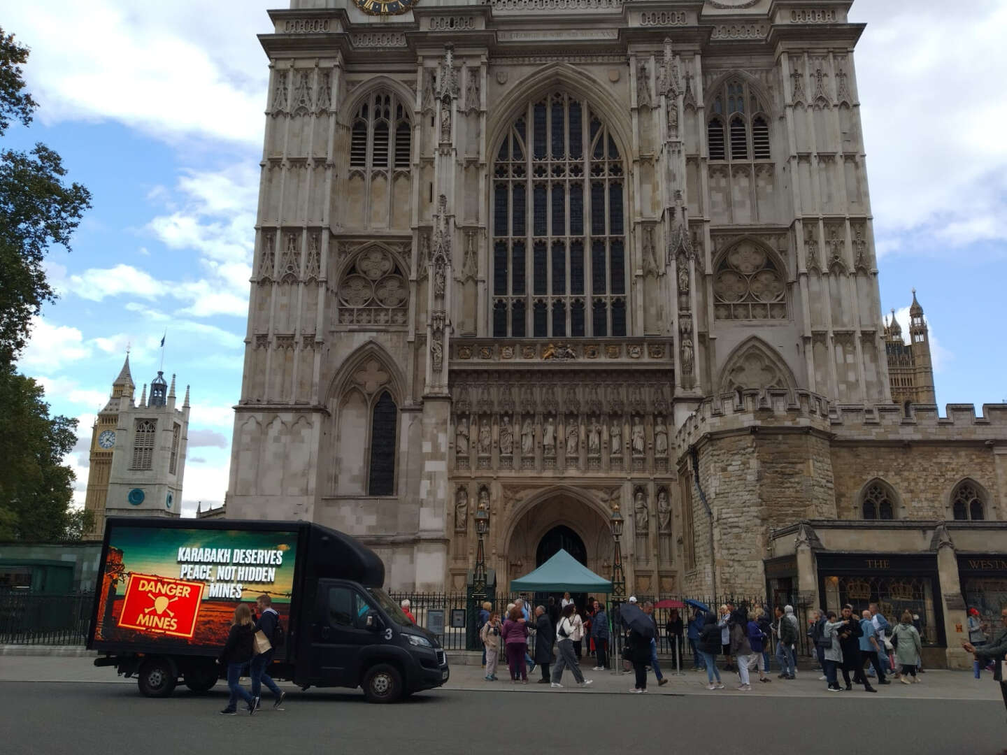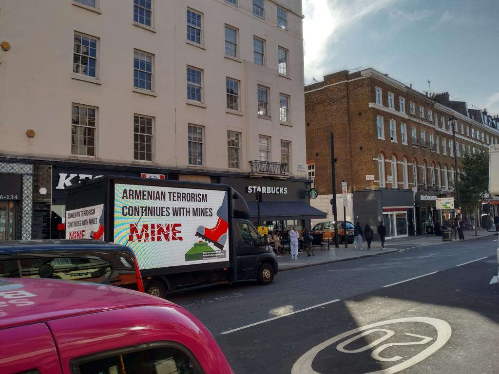 Birleşik Krallık Azerbaycan Topluluğu'nun düzenlediği eylem sırasında, üzerinde çeşitli sloganların ve bilgilerin yer aldığı LED ekranlı kamyonlar, Londra ve Manchester'ın kalabalık merkezi caddelerinde dolaştı. 8 saat süren eylem boyunca araç Londra'nın Oxford Street, Regent Street, Picadilly, Westminster Bridge, Parliament Square ve Manchester'ın Picadilly Gardens'ı, King Street, New Cathedral Street, Cheetham Hill Road, Canal Street'ten geçerek bölge sakinlerinin dikkatini çekti.