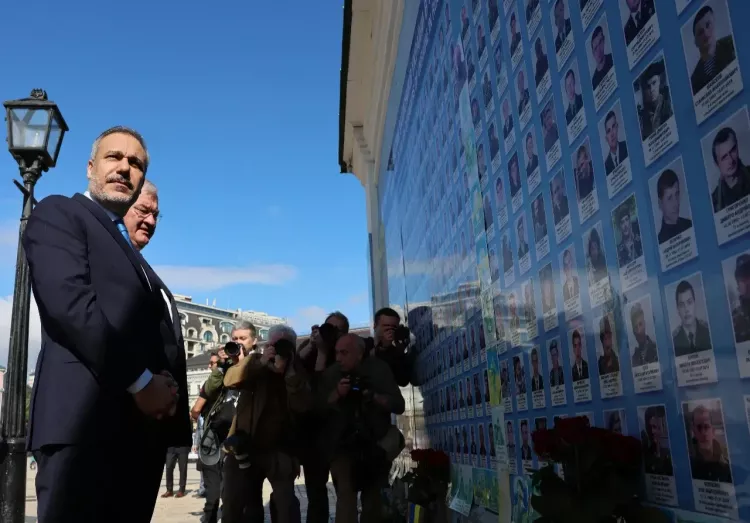 Türkiye Dışişleri Bakanı Hakan Fidan, Rus saldırganlığına karşı vatanını savunurken hayatını kaybeden Ukraynalı askerlerin adını ve anısını yaşatmak için başkent Kıyiv'de inşa edilen Anma Duvarı'na çiçek bıraktı.