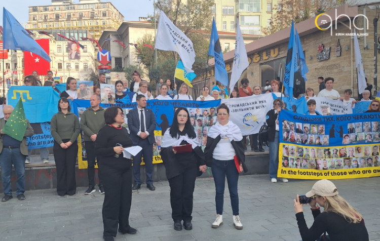 İstanbul Şişhane Meydanı'nda, Rus işgaline karşı vatanını savunurken esir düşen, cephede kaybolan ve yasa dışı şekilde mahkûm edilen Ukraynalı askerlere destek amacıyla miting gerçekleştirildi.