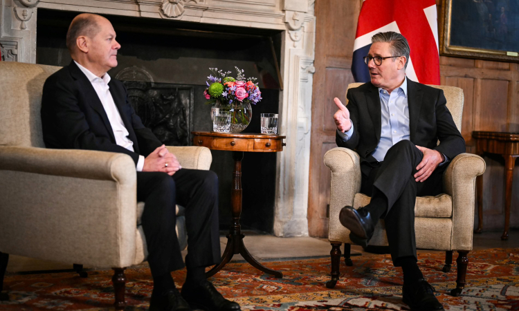 Starmer ayrıca, 2 Şubat 2025 tarihinde Almanya Başbakanı Olaf Scholz ile Birleşik Krallık'ın başkenti Londra'da görüştü. Görüşmede iki lider Ukrayna-Rusya Savaşı ve gündemdeki konuları ele aldı. Starmer burada yapılan görüşmede Alman Şansölyesi Scholz'a, “(Ukrayna'nın) önümüzdeki aylarda mümkün olan en güçlü konumda olmasını sağlamanın önemli olduğunu, böylece güç yoluyla barışa ulaşılabileceğini” söyledi.