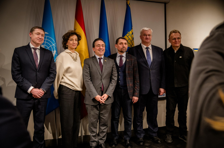 İspanya Dışişleri, Avrupa Birliği ve İşbirliği Bakanlığından da konuyla ilgili açıklama yapıldı. Bakanlık açıklamasında, Bakan Albares'in ziyareti esnasında 10 milyon avroluk ek insani yardımın teslim edildiği belirtildi. Bakan Albares, ziyareti esnasında Ukraynalı mevkidaşı ve UNESCO Genel Direktörü Audrey Azoulay ile birlikte İspanya-UNESCO Kalkınma İşbirliği Güven Fonu sayesinde oluşturulan bir kültür merkezinin açılışını gerçekleştirdi. Yapılan açıklamada, açılışı gerçekleştirilen kültür merkezi hakkında şu ifadelere yer verildi: