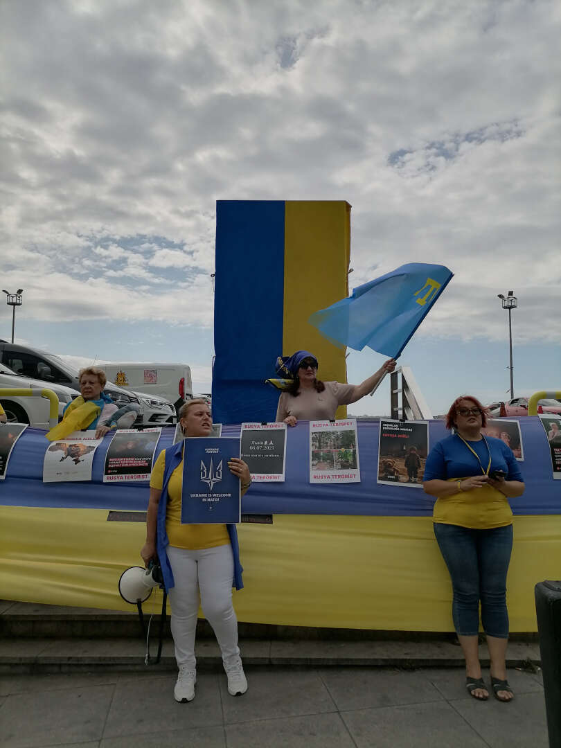 Ukrayna Kültür Derneği Başkan Yardımcısı Aliya Usenova, İstanbul'da Ukraynalı sığınmacıların Rusya'nın başlattığı savaşı protesto ettiği etkinlikte, Türkiye Cumhurbaşkanı Recep Tayyip Erdoğan'a ve Türk halkına hitaben yazılan açık mektubu okudu. Mektupta, Rusya'nın savaş suçlarına maruz kalan Ukrayna halkına gösterilen destekten ötürü Türk halkı ve Cumhurbaşkanı Erdoğan'a teşekkür edildi.