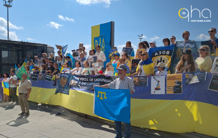 Eylemde konuşan Kırım Tatar Milli Meclisi Üyesi Gülnara Bekirova, Rus işgali altında bulunan Herson ve Zaporijjya bölgelerinde işgal güçlerinin yerel halka baskı uygulamaya ve insanları alıkoymayı sürdürdüğünü hatırlattı.