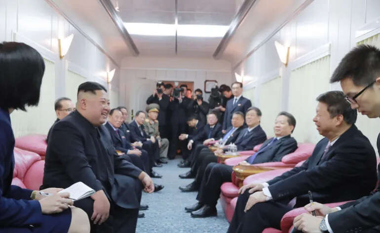 Kim Jong-Un Rusya ziyareti için zırhlı trenine binerken görüntülendi. Kim Jong-Un'un savunma bakanı, iki üst düzey general ve mühimmat sanayii dairesi müdüründen oluşan bir ekiple birlikte olduğu öğrenildi. Rus devlet haber ajansı RIA'ya göre, Kuzey Kore lideri Kim Jong-Un'u taşıyan zırhlı tren sınırı geçerek Rusya'ya geçti.